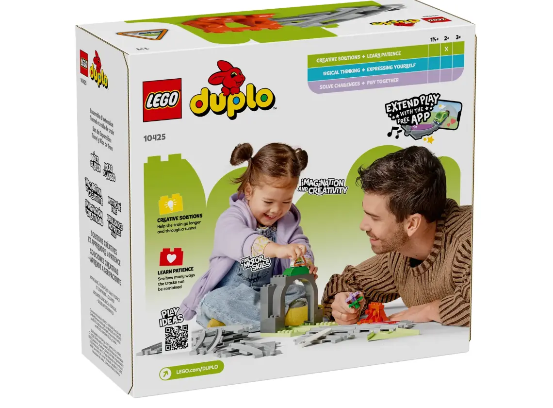 კომპლექტში შედის სარკინიგზო რელსები, გვირაბი და დამატებითი ელემენტები, რომლებიც მატარებლის გზას უფრო დინამიკურს და სახალისოს ხდის. დიდი და უსაფრთხო DUPLO აგურები სპეციალურად შექმნილია მცირეწლოვანი ბავშვებისთვის, რაც უსაფრთხო და მარტივ თამაშს უზრუნველყოფს.