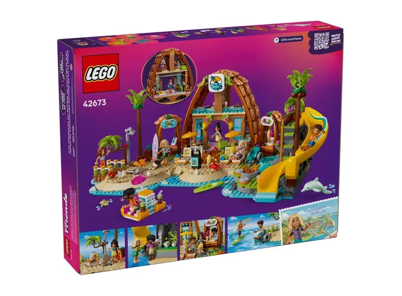 LEGO Friends Family Vacation Beach Resort არის დიდი და საინტერესო კონსტრუქტორი, რომელიც გაძლევს შესაძლებლობას ააგო მზიანი სანაპიროს კურორტი და მოაწყო დაუვიწყარი დასვენება მეგობრებთან ერთად. კომპლექტში იპოვი მრავალსართულიან სასტუმროს ზონას ტერასით, აუზს წყლის სრიალით, პლაჟის ბარს, ლაუნჯ სივრცეს ქოლგებითა და ხელჩასაკიდი ატრაქციონებით. მოყვება რამდენიმე მინი ფიგურა და თბილი ზღვის ატმოსფეროს შესაქმნელი აქსესუარები სერფინგის დაფები, სკუტერი, ძაღლის ფიგურა, თამაშის ინვენტარი და დეკორაციები პალმის ხეებით. მოძრავი და დასაკეცი ელემენტები ამარტივებს სცენარის შეცვლას: გამართე წვეულება ტერასაზე, განაახლე ნომრები, მოემზადე წყლის სპორტისთვის და გაისეირნე ნავით. მაღალი ხარისხის LEGO დეტალები უზრუნველყოფს გამძლეობას, მარტივ აწყობას და მასშტაბურ თამაშს, ხოლო მზიანი დიზაინი იდეალურ საჩუქრად აქცევს ნაკრებს ყველა ასაკის გულშემატკივრისთვის.