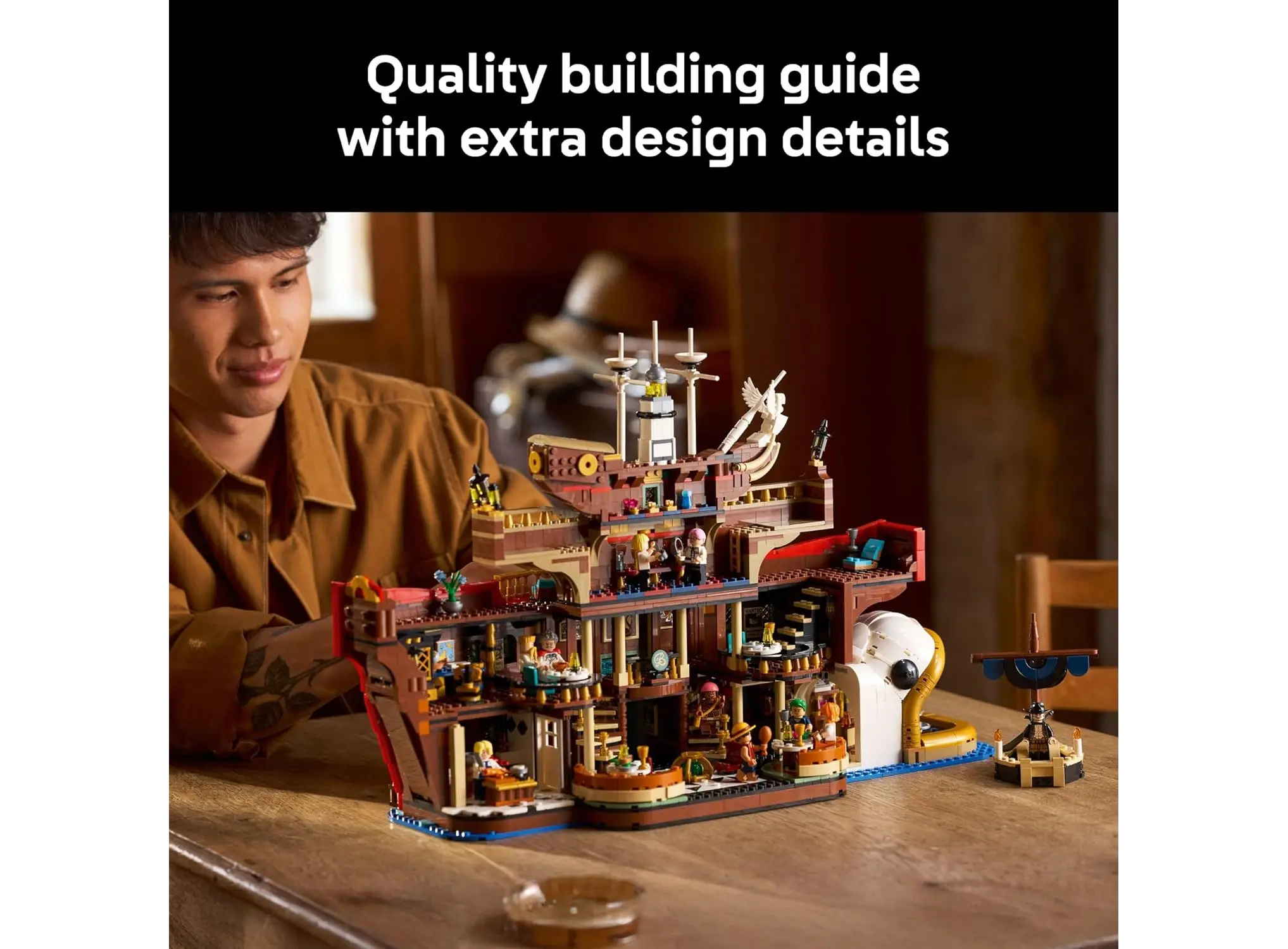 LEGO ONE PIECE The Baratie Floating Restaurant — უნიკალური კონსტრუქტორია ლეგენდარული ანიმე ONE PIECE-ის გულშემატკივრებისთვის. მოდელი ზუსტად ასახავს ზეფის ცნობილ მცურავ რესტორან Baratie-ს, სადაც ბევრ საკვანძო სცენას აქვს ადგილი. დეტალების მაღალი სიზუსტით, ფერადი ელემენტებით და მრავალსართულიანი სტრუქტურით იგი ქმნის ნამდვილ სამხატვრო ნამუშევარს. ნაკრები მოიცავს პერსონაჟების მინი-ფიგურებს, მათ შორის Luffy, Sanji და სხვა ეკიპაჟის წევრებს, რაც თამაშს ან გამოფენას კიდევ უფრო გასაოცარს ხდის. შესაფერისია როგორც მოზარდებისთვის, ასევე კოლექციონერებისთვის. LEGO Baratie აერთიანებს შემოქმედებითობას, სათავგადასავლო სულს და მშვენიერ დიზაინს ერთ სრულ კომპლექტში.