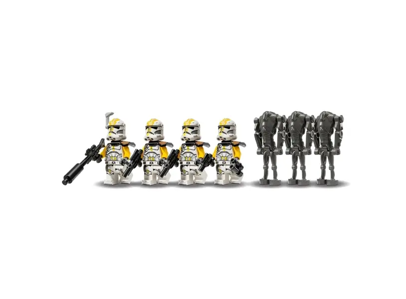 LEGO Star Wars 327th Star Corps Clone Troopers Battle Pack არის უნიკალური კონსტრუქტორი, რომელიც საშუალებას გაძლევთ ააგოთ და გააცოცხლოთ გალაქტიკური ომების ერთ-ერთი ყველაზე საინტერესო სცენა. კომპლექტში შედის რამდენიმე დეტალურად დამუშავებული კლონტრუპერის ფიგურა, იარაღები და პატარა საბრძოლო ტექნიკა, რაც თამაშს რეალისტურ და დინამიკურ სახეს აძლევს. მაღალი ხარისხის LEGO დეტალები გამძლეა და მარტივად ეწყობა, რაც პროცესს უფრო სასიამოვნოს ხდის როგორც ბავშვებისთვის, ასევე კოლექციონერებისთვის. Battle Pack იდეალურია იმათთვის, ვისაც სურს გაფართოოს საკუთარი Star Wars კოლექცია და შექმნას კიდევ უფრო მასშტაბური ბრძოლები. ეს მოდელი ხელს უწყობს კრეატიულობას, წარმოსახვასა და გუნდური თამაშის უნარებს. LEGO Star Wars 327th Star Corps Clone Troopers Battle Pack არის შესანიშნავი საჩუქარი ნებისმიერი ასაკის Star Wars-ის ფანებისთვის, რომლებიც ოცნებობენ საკუთარი გალაქტიკის შექმნაზე.