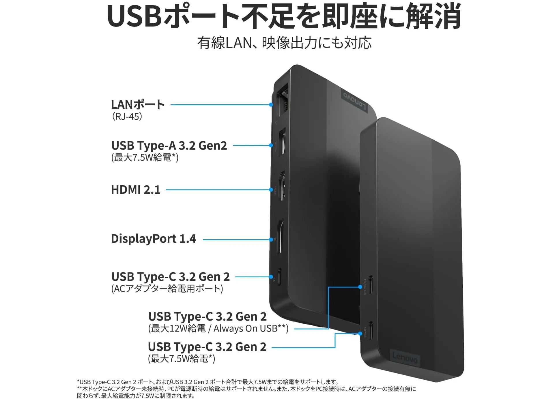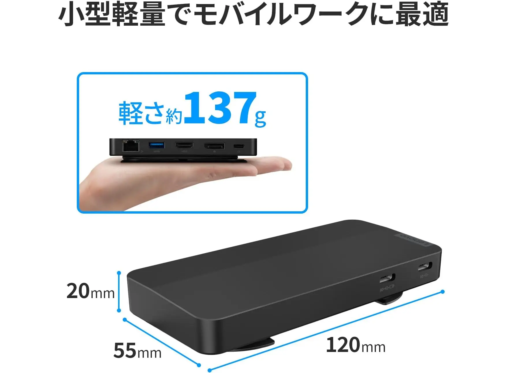 Lenovo 40B90000WW USB‑C Dual Display Travel Dock წარმოადგენს ეფექტურ და კომპაქტურ დოკ‑სადგურს თანამედროვე USB‑C ან Thunderbolt მენეჯერული პორტებით აღჭურვილი ნოუთბუქებისთვის. მისი ელეგანტური Eclipse Black ფერი და მსუბუქი დიზაინი (დაახლოებით 137 გ) იდეალურია მოგზაურობისთვის. მოწყობილობას აქვს HDMI 2.1 და DisplayPort 1.4 პორტები, რაც შეიძლება ორი 4K (3840 × 2160 @60 Hz) მონიტორის დასაკავშირებლად, უზრუნველყოფს გრაფიკის მაღალი ხარისხის გამოჩენას. ტრადიციული USB‑A 3.2 Gen 2 პორტი (10 Gbps), ორი USB‑C 3.2 Gen 2 (10 Gbps და Gigabit RJ‑45 ნეთვორკ პორტი ზრდის აქტიური კავშირისა და მიწოდების შესაძლებლობებს. დოკს შეუძლია მხარდაჭეროს Power Delivery 65 W იმ შემთხვევაში 100 W ადაპტერთან, ან 100 W PD 135 W ადაპტერის გამოყენებისას. მოწყობილობა თავსებადია Windows 10 და 11 სისტემებთან, მხარდაჭერილია Wake‑on‑LAN, Fast Role Swap და MAC address pass‑through ფუნქციები. აღნიშნული მოდელი იყენებს 66 % მომხმარებლის შეწყვეტილი პლასტმასის მასალას გარემოს განსახილველად. ეს ჯამურად ქმნის პროდუქტს, რომელიც იდეალურია მობილური სამუშაო სივრცისთვის და მომხმარებლის კომფორტისთვის.