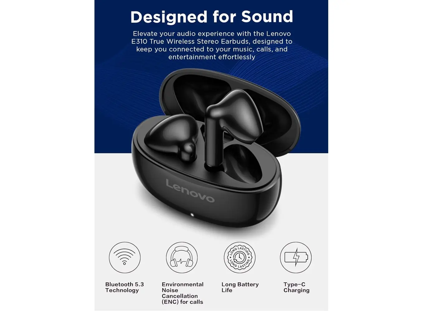 ყურსასმენი Lenovo E310 True Wireless Stereo Earbuds standalone-black