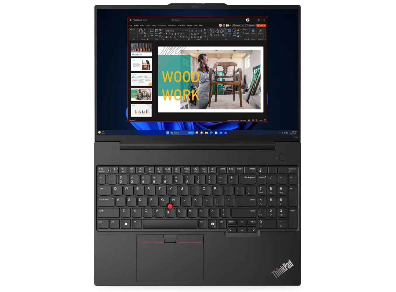 Lenovo ThinkPad E16 Gen 2 არის 16-დუიმიანი ბიზნეს კლასის ნოუთბუქი, რომელიც აერთიანებს მაღალ წარმადობასა და გამძლე დიზაინს. აღჭურვილია Intel Core Ultra 5 125U პროცესორით, რომელიც უზრუნველყოფს სწრაფ და ეფექტურ მუშაობას. 16GB DDR5 ოპერატიული მეხსიერება და 512GB PCIe NVMe SSD უზრუნველყოფს საკმარის სივრცესა და სისწრაფეს მონაცემების დამუშავებისთვის. ინტეგრირებული Intel Graphics უზრუნველყოფს ხარისხიან ვიზუალურ გამოცდილებას ყოველდღიური ამოცანებისთვის. 16-დუიმიანი WUXGA (1920x1200) IPS დისპლეი სთავაზობს მკვეთრ და ნათელ გამოსახულებას. ნოუთბუქი ასევე აღჭურვილია მრავალფეროვანი პორტებით, მათ შორის Thunderbolt 4, USB-C და HDMI, რაც უზრუნველყოფს კავშირების მოქნილობას. მისი გრაფიტის შავი ფერი და გამძლე კონსტრუქცია იდეალურად შეესაბამება ბიზნეს გარემოს. დამატებითი ფუნქციები მოიცავს Wi-Fi 6E-ს, Bluetooth 5.3-ს და Windows 11 Pro ოპერაციულ სისტემას, რაც უზრუნველყოფს თანამედროვე და უსაფრთხო სამუშაო გარემოს.