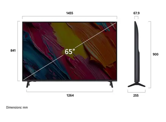- ზომები სადგამის გარეშე: 1455 x 841 x 67.9 mm