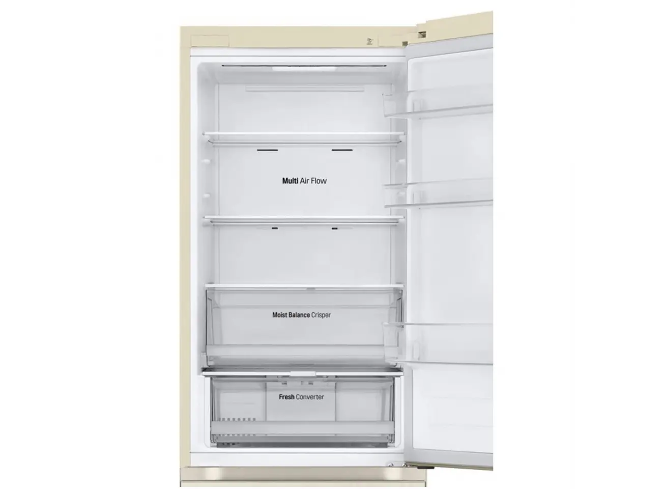 LG GR-B509FVFW არის 384 ლიტრი ტევადობის ორკამერიანი მაცივარი, რომელიც გამოირჩევა ინვერტორული ძრავით, რაც უზრუნველყოფს ენერგოეფექტურობასა და ხანგრძლივ გამძლეობას. No Frost ტექნოლოგია ხელს უშლის ყინულის დაგროვებას, რაც ამარტივებს მოვლას და ინარჩუნებს პროდუქტების სიჯანსაღეს. Multi-Air Flow სისტემა უზრუნველყოფს ჰაერის თანაბარ განაწილებას მაცივრის შიგნით, რაც ინარჩუნებს სტაბილურ ტემპერატურას და პროდუქტების სიგრილეს. FRESHBalancer™ ტექნოლოგია ინარჩუნებს ტენიანობის ოპტიმალურ დონეს ხილისა და ბოსტნეულისთვის, რაც ახანგრძლივებს მათ სიჯანსაღეს. Wine Rack ფუნქცია საშუალებას გაძლევთ კომფორტულად შეინახოთ ღვინის ბოთლები. მაცივრის ზომებია 203 სმ სიმაღლე, 59.5 სმ სიგანე და 67.6 სმ სიღრმე, რაც უზრუნველყოფს მის მარტივ განთავსებას ნებისმიერ სამზარეულოში. კრემისფერი დიზაინი კი თანამედროვე იერსახეს ანიჭებს თქვენს ინტერიერს.