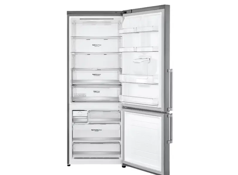 პროდუქტი LG GR‑F589BQCM.AMCQMER ხელმისაწვდომია ინოვაციური ინვერტორული კომპრესორით, რომელიც უზრუნველყოფს ენერგოფუნქციურ და წყნარ მუშაობას. მას აქვს 446 ლიტრის სუფთა მოცულობა (324 ლ ფრიჯის კამერა და 122 ლ მაცივრის კამერა) და Multi Air Flow სისტემა, რომელიც ჰაერს თანაბრად აფრქვევს მთელ სივრცეში. Smart Diagnosis ფუნქცია შესაძლებელს ხდის სწრაფ დიაგნოსტიკას. Moist Balance Crisper™ კონტეინერი ინარჩუნებს საკვები პროდუქტების დროულ ტენიანობას. LED ეკრანი მარტივად კონტროლდება, არსებობს სწრაფი გაგრილების ვარიანტი და Ice/water გამომტანი. Platinum Silver ელფერი ხაზს უსვამს თანამედროვეობასა და ელეგანტურობას. ზომები: 185 სმ ფართო, 70 სმ სიგანე, 74 სმ სიღრმე, ხმაურის დონე – 41 დბ.