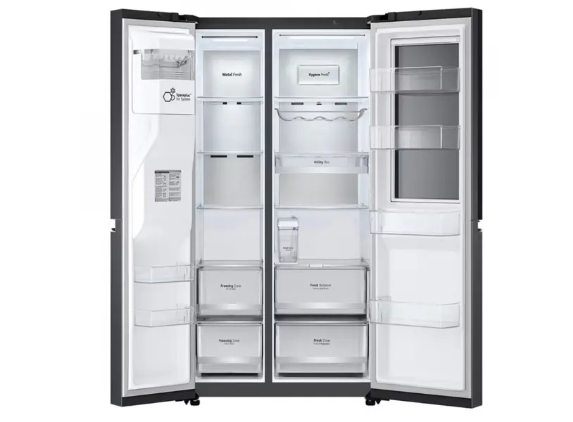 LG GR‑X267CQEW.AMCQMER არის ელეგანტური Side‑by‑Side ტიპის მაცივარი 617 ლ ჯამური ტევადობით, A+ ენერგოეფექტურობით და არ მოითხოვს მოყინვას (No Frost). მაცივრის სანაცვლო ტევადობა შეადგენს 412 ლ, საყინულე – 205 ლ. აქვს InstaView™ Door‑in‑Door ჭრილი – დააკაკუნეთ დაბლა კარზე და ნახავთ შიგთავსს, ხოლო Metal Fresh™ გაგრილების სისტემა და LinearCooling™ ინვერტორული კომპრესორი უზრუნველყოფს ერთგვაროვან ტემპერატურას და ენერგიის დაზოგვას. მოწყობილობა აღჭურვილია LED შიდა განათებით, შუშის თაროებით, ბოთლების დასადებით, კვერცხის კონტეინერით, ბოსტნეულის ყუთებით და ბოავის დასაფარებით. ყინულის და წყლის დისპენსერი ავტომატური ყინულის მანქანით და UVnano™ ანტიბაქტერიული ფილტრით უზრუნველყოფს ჰიგიენურ გამოყენებას. Smart Diagnosis და ThinQ™ Wi‑Fi მხარდაჭერა იძლევა დისტანციურ კონტროლს და ჭკვიან ფუნქციებს. მოწყობილობას აქვს ბავშვთა ბლოკი, ხმოვანი სიგნალიც და ხმაურის დონე მხოლოდ ≈36 dB.