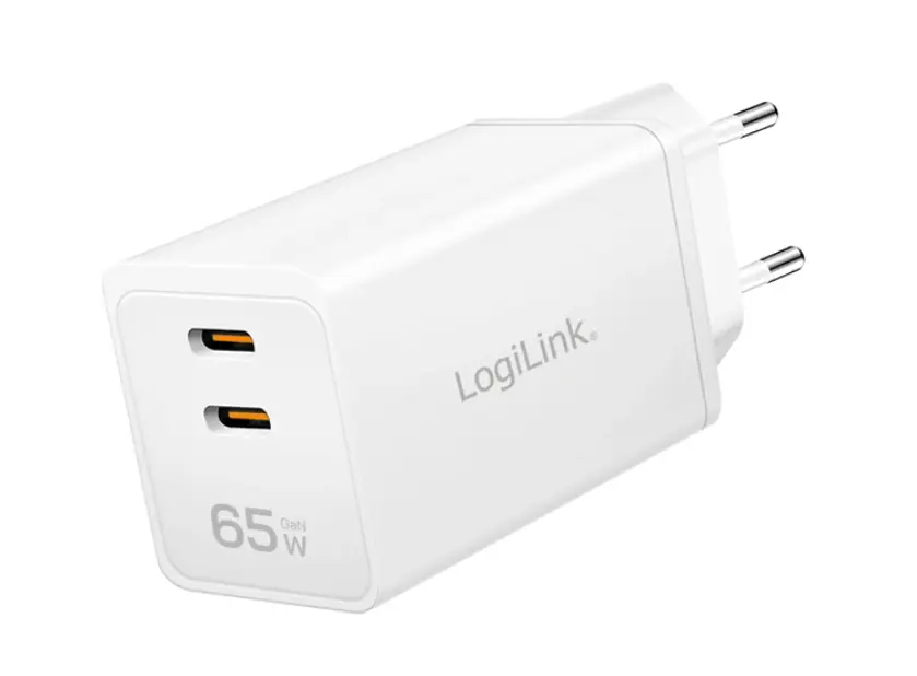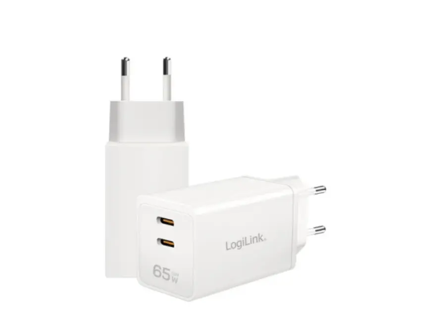 დამტენი Logilink PA0367 2xUSB-C (PD 3.0/QC 4.0) GaN Fast Charger 65W White