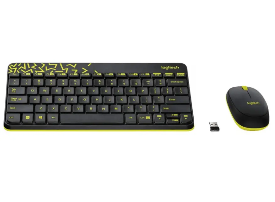 კლავიატურა და მაუსი LOGITECH MK240 Nano Wireless Combo - BLACK/CHARTREUSE - RUS