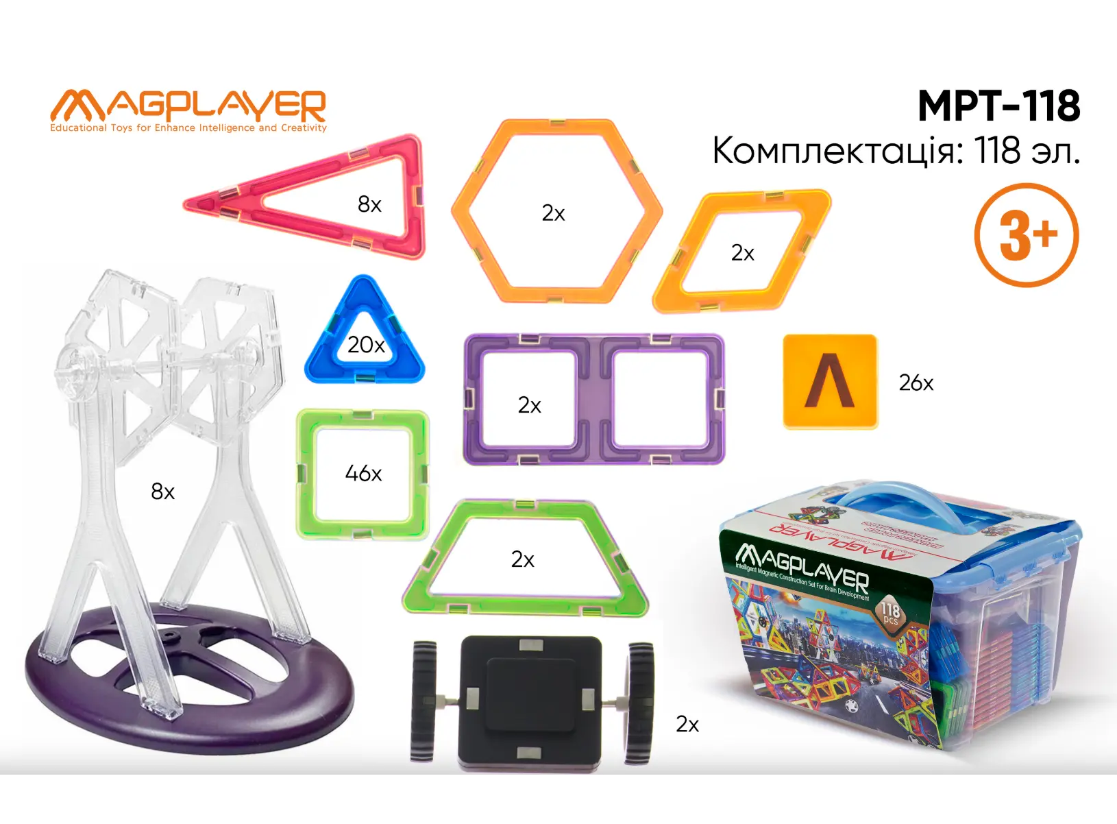 მაგნიტური კონსტრუქტორი Magplayer Designer magnetic box set 118