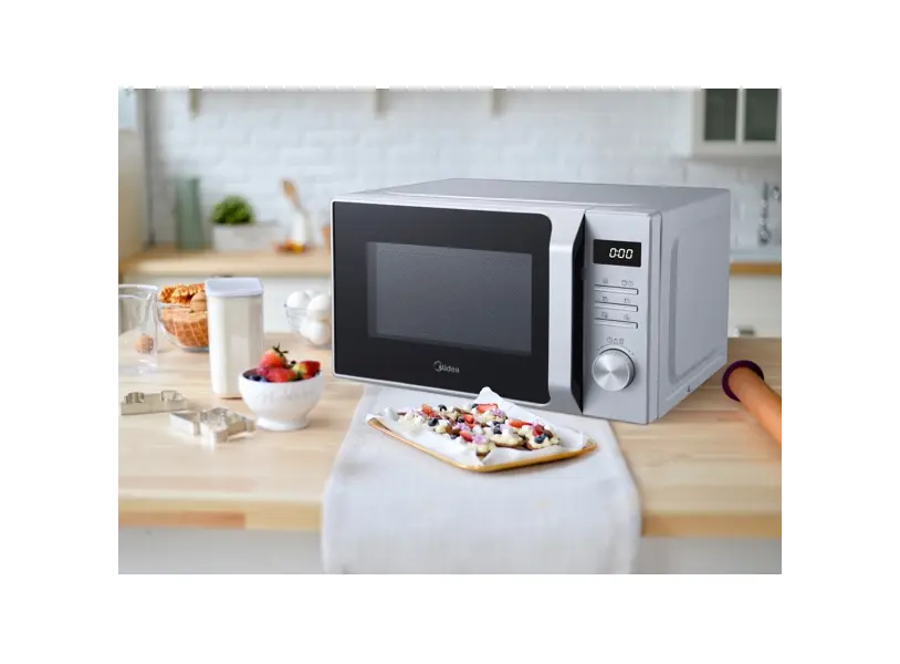 მიკროტალღური ღუმელი Midea AM720C2MV-S არის ფუნქციური და პრაქტიკული მოწყობილობა, რომელიც დაგეხმარებათ სწრაფად და კომფორტულად მოამზადოთ ან გააცხელოთ საკვები. 20 ლიტრიანი ტევადობა და კომპაქტური ზომა საშუალებას იძლევა მარტივად მოათავსოთ იგი როგორც მცირე, ისე საშუალო ზომის სამზარეულოში. მოწყობილობა მუშაობს 700 ვატამდე სიმძლავრით და გააჩნია რამდენიმე რეჟიმი, მათ შორის დეფროსტის ფუნქცია, რომელიც იდეალურია გაყინული პროდუქტების სწრაფად მოსამზადებლად. მექანიკური კონტროლის პანელი გამარტივებულია და საშუალებას გაძლევთ მარტივად შეარჩიოთ დრო და სიმძლავრე. თანამედროვე დიზაინი, უჟანგავი ფერის კორპუსით, ინტერიერს სძენს ელეგანტურობას და ადვილად ერწყმის ნებისმიერ სტილს.