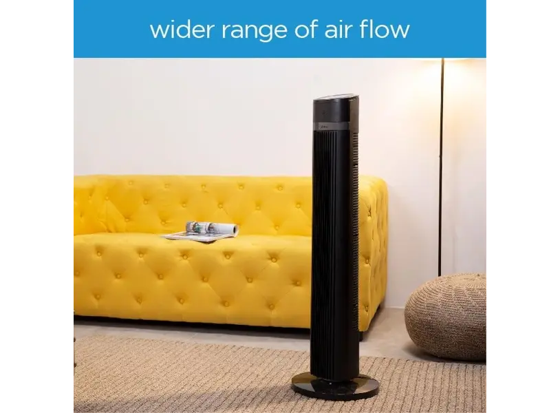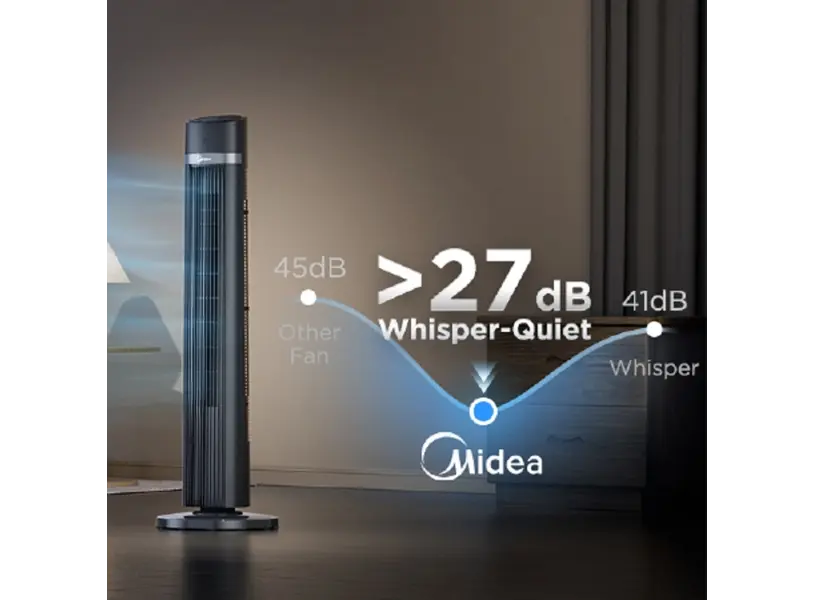 Midea FZ10‑18TRB არის დახვეწილი დიზაინის შავი ტაუერვენტილატორი ძლიერი 45 W ძრავით და ენერგოეფექტურ რეჟიმებში. მოწყობილობა აფარჯუნებს 90° ჰორიზონტალურ შესხურებას ფართო სივრცეში, რაც უზრუნველყოფს ერთგვაროვან და გაგრილებულ ჰაერს. აქვს 3 სიჩქარის დაპარალება და 3 ქაოტური საჩრდილო რეჟიმი (Normal, Natural Breeze, Sleep). ინტეგრირებული 15 საათიანი ტაიმერი და სენსორული მართვის პანელი უპრობლემოდ მართავს მოძრაობას, ხოლო თითოეულ რეჟიმზე შესაძლებელია შორსიანი კონტროლი დისტანციური პულტით. ხმაურის დონე მკვეთრად დაბალია (≈48 dB), რაც საშუალებას იძლევა გამოიყენოთ საძინებელშიც და სამუშაო სივრცეში. წონა დაახლოებით 5.3 კგ, გაბარიტი 101 სმ სიმაღლით და 30×30 სმ სიგანით ან სიღრმით. შესაფერისია აპარტამენტებისთვის, ოფისებისთვის და ბავშვებისა თუ პეტ კონტროლირებადი გარემოსთვის.