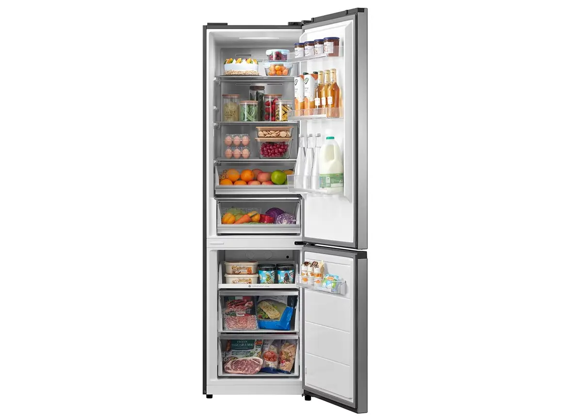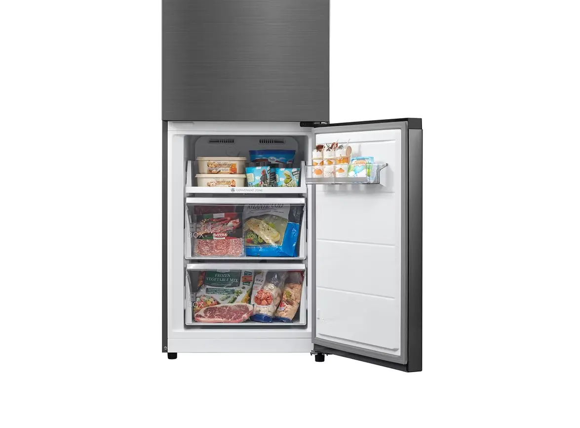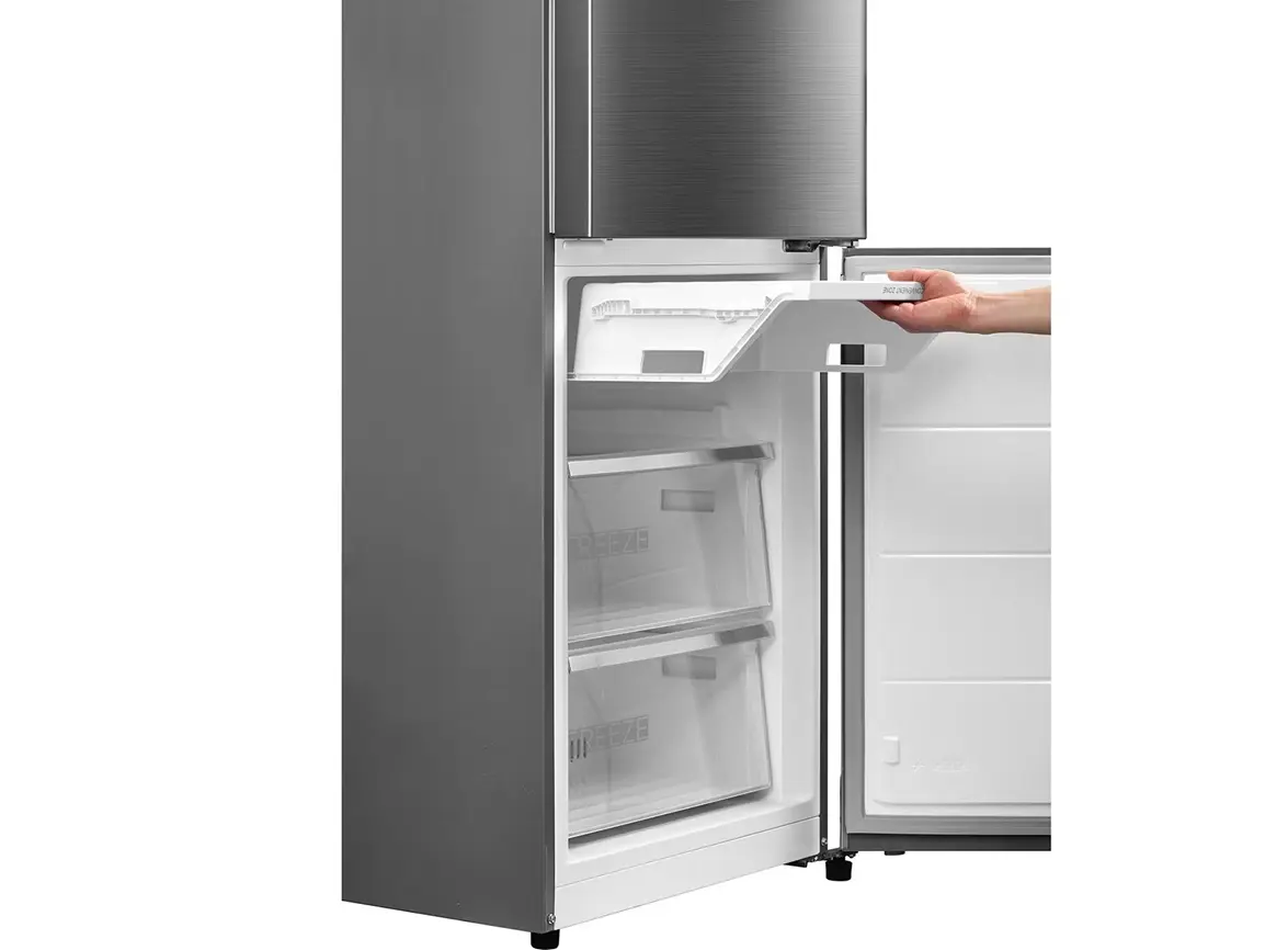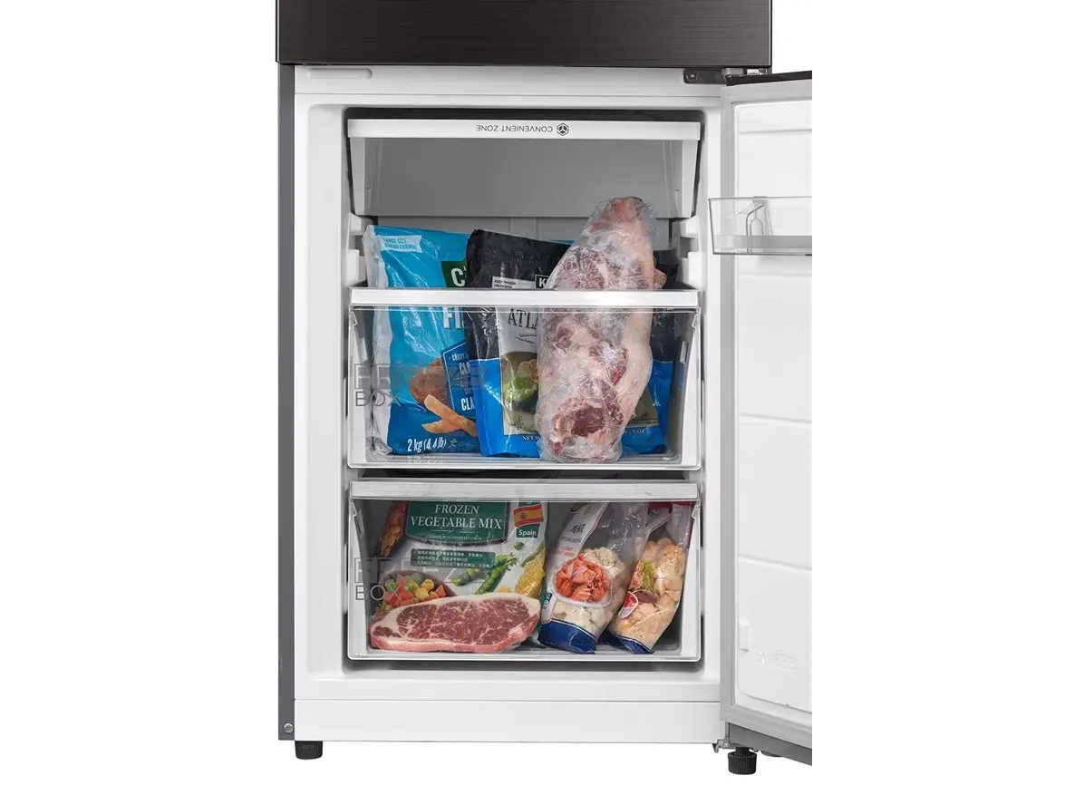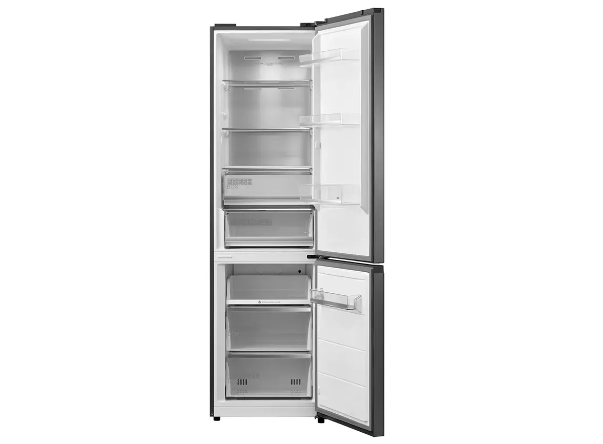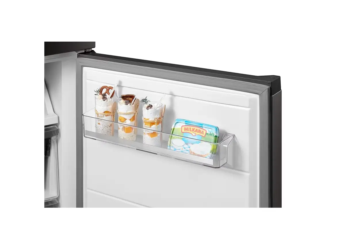 Midea MDRB521MIE46OD არის ქვედა საყინულით, ორ განყოფილებიან სტაბილური ენერგიის სია A++, ინვერტორული კომპრესორით და No Frost ტექნოლოგიით, რაც უზრუნველყოფს სუპერ ჩაცხება და მაღალი ეფექტურობა. საოფისე დონის სიჩუმის მაჩვენებელი — მხოლოდ 38 dB და სოვიკი დიზაინის გარეგნობა, დამალული სახელურით და გალამაზებული სილვერული ფერით. საერთო საკვების მოცულობა fridge compartment–ში 256 ლ, საყინულეში 104 ლ, იდეალურია ოჯახის დღიური საჭიროებისთვის. ეკოლოგიურად სუფთა R600a ფრეონი, LED განათება და გარეთ ციფრული საკონტროლო ეკრანი მკვეთრი, სუფთა გამოყენებისთვის. შექმნილია სხვადასხვა კლიმატური კლასებისთვის (N/ST/T) და აქვს 3 წლიანი მწარმოებლის გარანტია. დაკავშირების საშუალებად ხელმისაწვდომია MSmartHome აპლიკაცია, რაც იძლევა კონტროლის შესაძლებლობას დისტანციურად. დამახასიათებელია ენერგოეფექტურობა, სიჩუმე და ინტელექტუალური მართვა, რაც იდეალური მისაღებია თანამედროვე სასტუმროებსა და ოჯახებისთვის.
