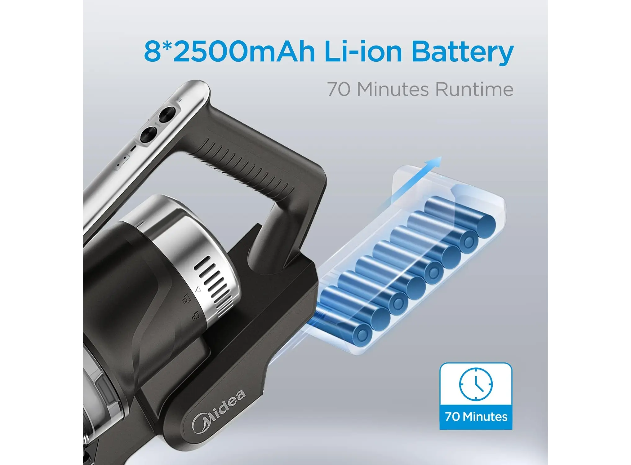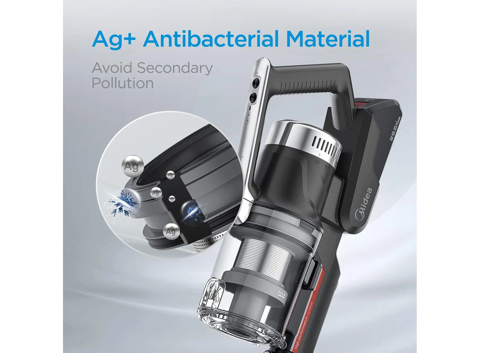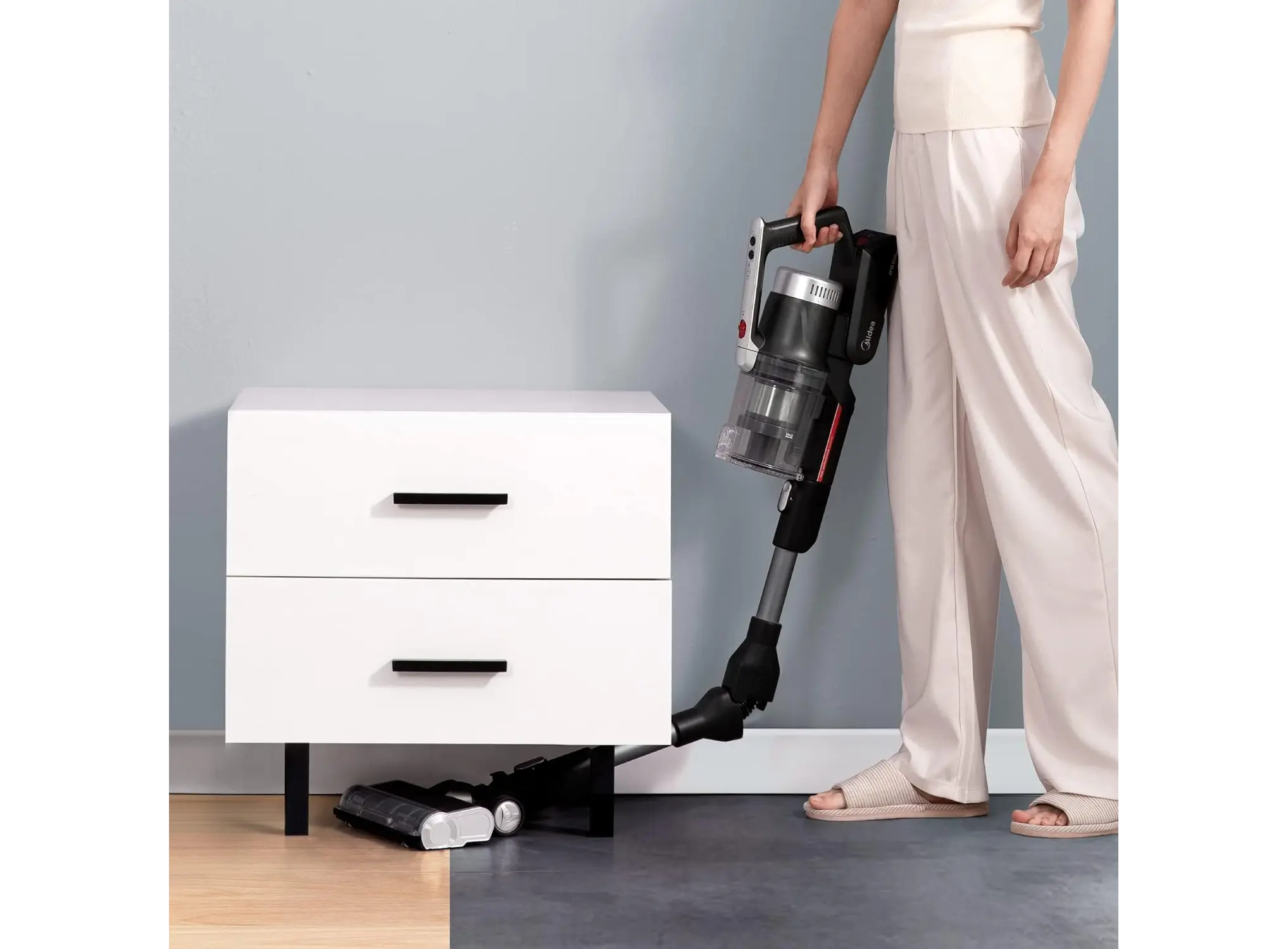 Midea P7 MCS2129BR (P7 Flex) არის უსადენო, 2‑in‑1 სტიკ და ხელით მოსაკიდი მტვერსასრუტი სწრაფი ჩართვით და ბენდავშებადი მილით. აღჭურვილია ძლიერი 450 W BLDC ძრავით, რომელიც შეუძლია შექმნას 150 AW მძლავრი დახრილი მოზიდვა (25 000 Pa). მუშაობის დრო ერთ დამუხტვაზე — დაახლოებით 70 წუთი, რაც იძლევა ვრცელი ფართების ერთჯერად კონტაქტს. მოწყობილობა იწონის მხოლოდ ≈2.3 კგ, რაც კომფორტულ და მობილურ ექსპლუატაციას უზრუნველყოფს. აქვს ოთხ სტადიიანი HEPA ფილტრაცია და 0.65 ლ მოცულობის მტვრის კონტეინერი ანტიბაქტერიული მასალით. LED განათება საშუალებას იძლევა კარგად დაინახოთ მუქ კუთხეები, მცირე ელემენტების დეტალური გაწმენდა. კომპლექტში შედის ორი განსხვავებული როლერი (ხალიჩისთვის და მყარ იატაკისთვის), ათვალზე დასადგამი საწყობი, ჯავშის ჯაგრისი და დანარჩენი გამოცოცხალ დასუფთავებაზე ორიენტირებული აქსესუარები. ხმაურის დონე ≈79 dB, დამუხტვის დრო – დაახლოებით 6 საათი. მოდელი განსაკუთრებით გამოსადეგია მყარი ჭერის, ავეჯის ქვეშ და მატრასებისათვის.