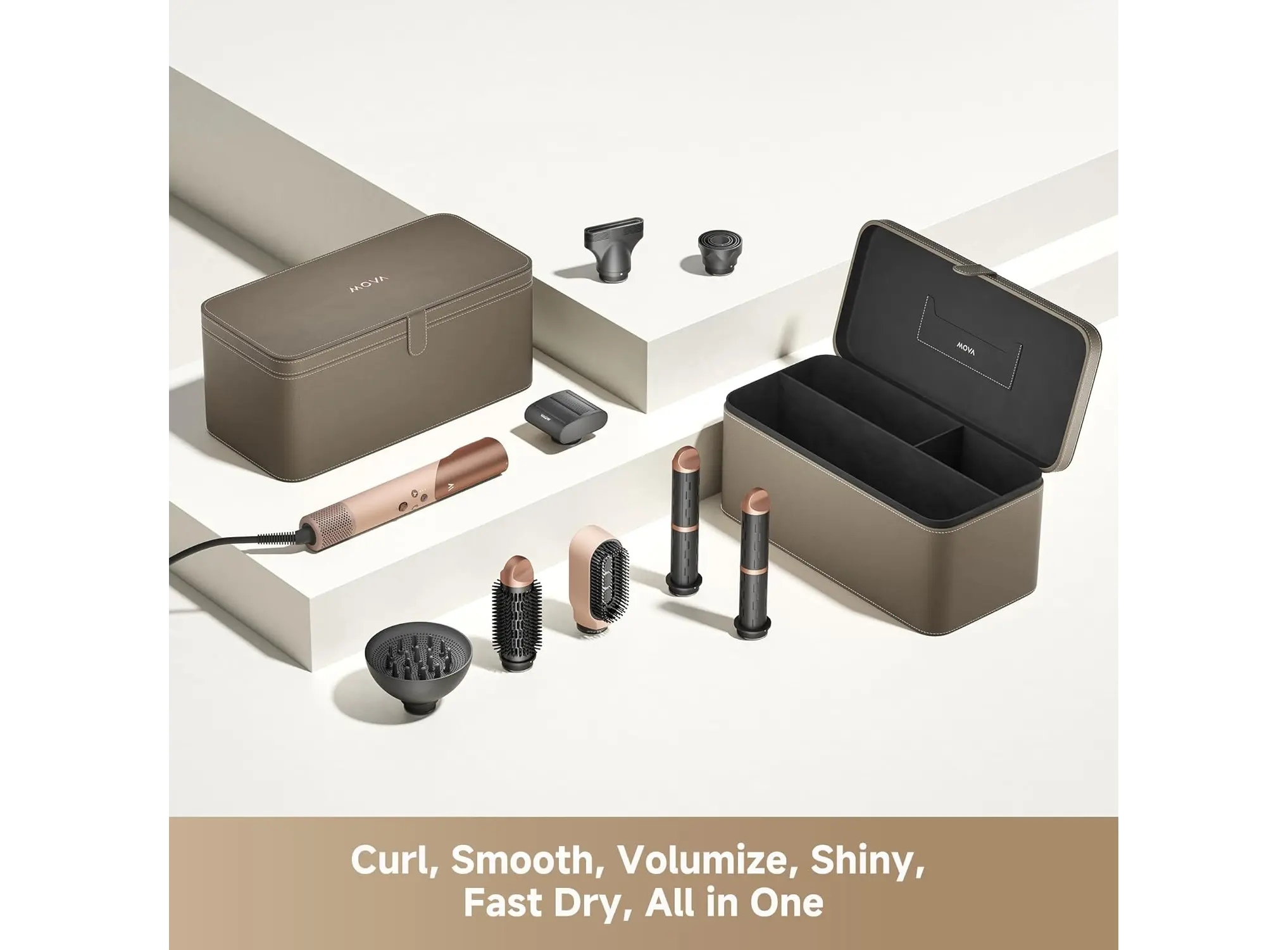 Mova Master 10 MultiStyler Sakura Pink წარმოადგენს მრავალფუნქციურ თმის საშრობ და სტაილერს, რომელიც გაერთიანებულია ერთ მოწყობილობაში სწრაფი გაშრობისა და პროფესიონალური სტილინგის მისაღებად. ძლიერი და ენერგოეფექტური ძრავა უზრუნველყოფს ჰაერის თანაბარ ნაკადს, რაც ამცირებს თმის გადახურების რისკს და ინარჩუნებს მის ბუნებრივ ბზინვარებას. მრავალრეჟიმიანი ტემპერატურისა და ჰაერის ნაკადის კონტროლი საშუალებას გაძლევთ მოწყობილობა მოარგოთ ნებისმიერი ტიპის თმას – იქნება ეს თხელი, ხშირი, სწორი ან ხვეული. კომპლექტში შესული სხვადასხვა თავაკი იდეალურია მოცულობის მისაცემად, კულულების შესაქმნელად ან გლუვი სტილის მისაღებად. Sakura Pink ფერი მოწყობილობას დამატებით ელეგანტურობასა და ინდივიდუალურ სტილს ანიჭებს. Mova Master 10 MultiStyler არის შესანიშნავი არჩევანი მათთვის, ვინც სურს სწრაფი, ჯანმრთელი და გამძლე სტილინგი ყოველდღიურ რეჟიმში.