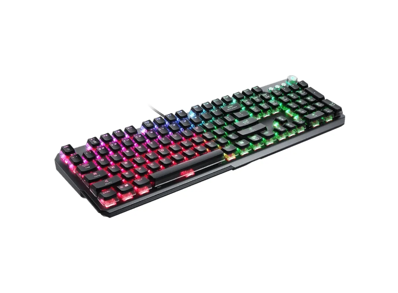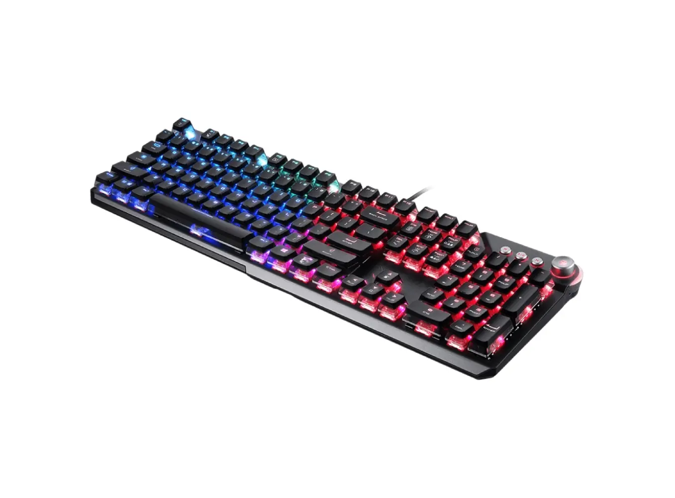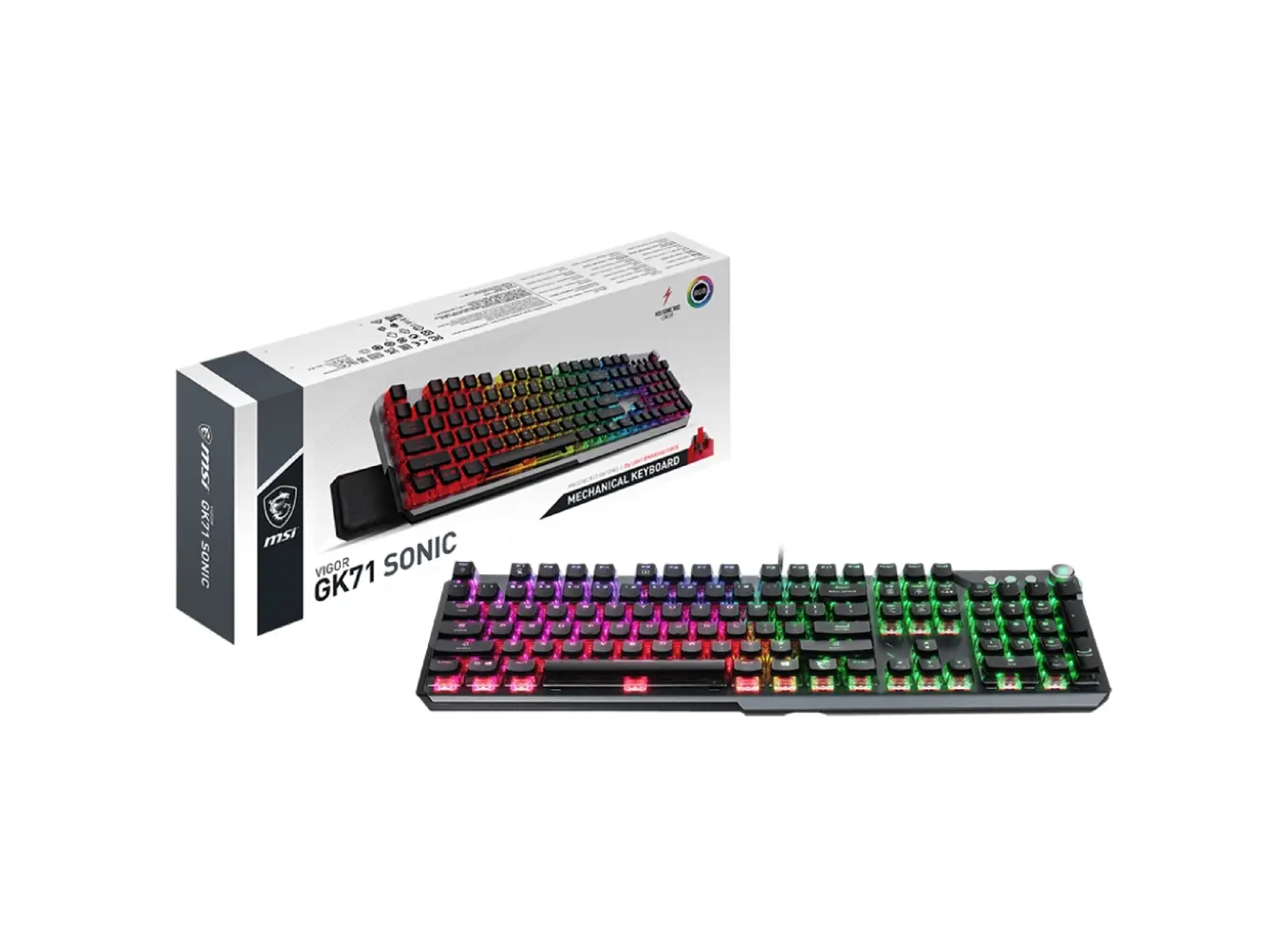კლავიატურა MSI VIGOR GK71 SONIC RED RU წარმოადგენს გეიმერულ მოწყობილობას, რომელიც აერთიანებს სისწრაფეს, კომფორტს და გამძლეობას. აღჭურვილია MSI SONIC RED მექანიკური ღილაკებით, რომლებიც გამოირჩევიან უაღრესად სწრაფი რეაგირებითა და რბილი დაჭერის შეგრძნებით – იდეალურია პროფესიონალი მოთამაშეებისთვის. თითოეული ღილაკი აღჭურვილია ინდივიდუალური RGB განათებით, რაც საშუალებას გაძლევს პერსონალურად დააკონფიგურირო ფერები და ეფექტები MSI Center პროგრამით. ალუმინის ზედაპირი და გამაგრებული კორპუსი უზრუნველყოფს ხანგრძლივ გამძლეობას, ხოლო ერგონომიული დიზაინი ამცირებს დაღლილობას ხანგრძლივი თამაშისას. კლავიატურას ასევე აქვს მულტიმედიური კონტროლები და მოხსნადი რბილი მაჯის საყრდენი მაქსიმალური კომფორტისთვის.