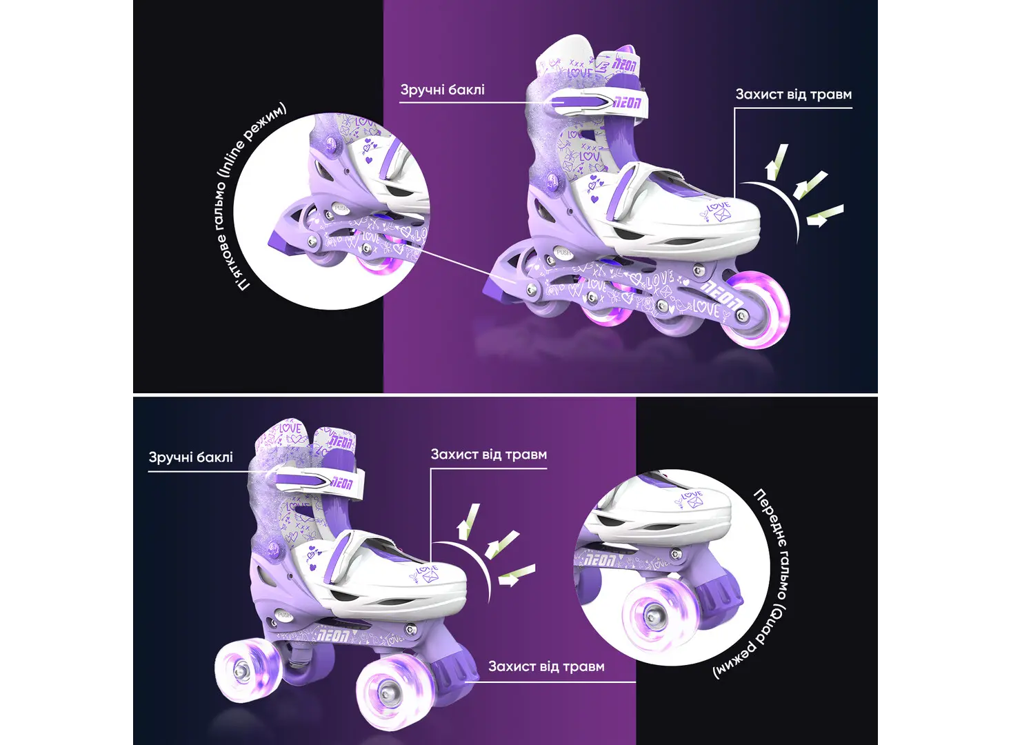 როლიკები Neon COMBO SKATES (SIZE 3-6) - NT10 (Purple)