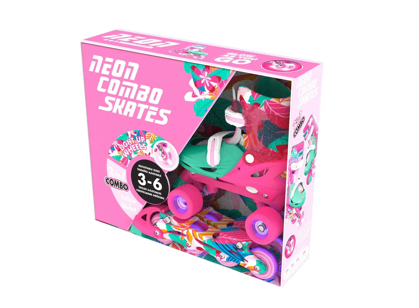 Neon Skates Combo როლიკები ზომით 34-37 (Floral) აერთიანებს ელეგანტურ დიზაინს, უსაფრთხოებას და კომფორტს. ფერადი ყვავილოვანი ორნამენტებით გაფორმებული ვიზუალი განსაკუთრებით მოსწონთ გოგონებს და აძლევს სტილს ყოველ მოძრაობას. რეგულირებადი ზომა (34-დან 37-მდე) საშუალებას იძლევა გამოყენება ფეხის ზრდასთან ერთად, რაც პროდუქტის პრაქტიკულობას ამაღლებს. როლიკები გამოირჩევა გამძლე კონსტრუქციით, რბილი შიდა საფარით და მყარად დამაგრებული ბორბლებით.