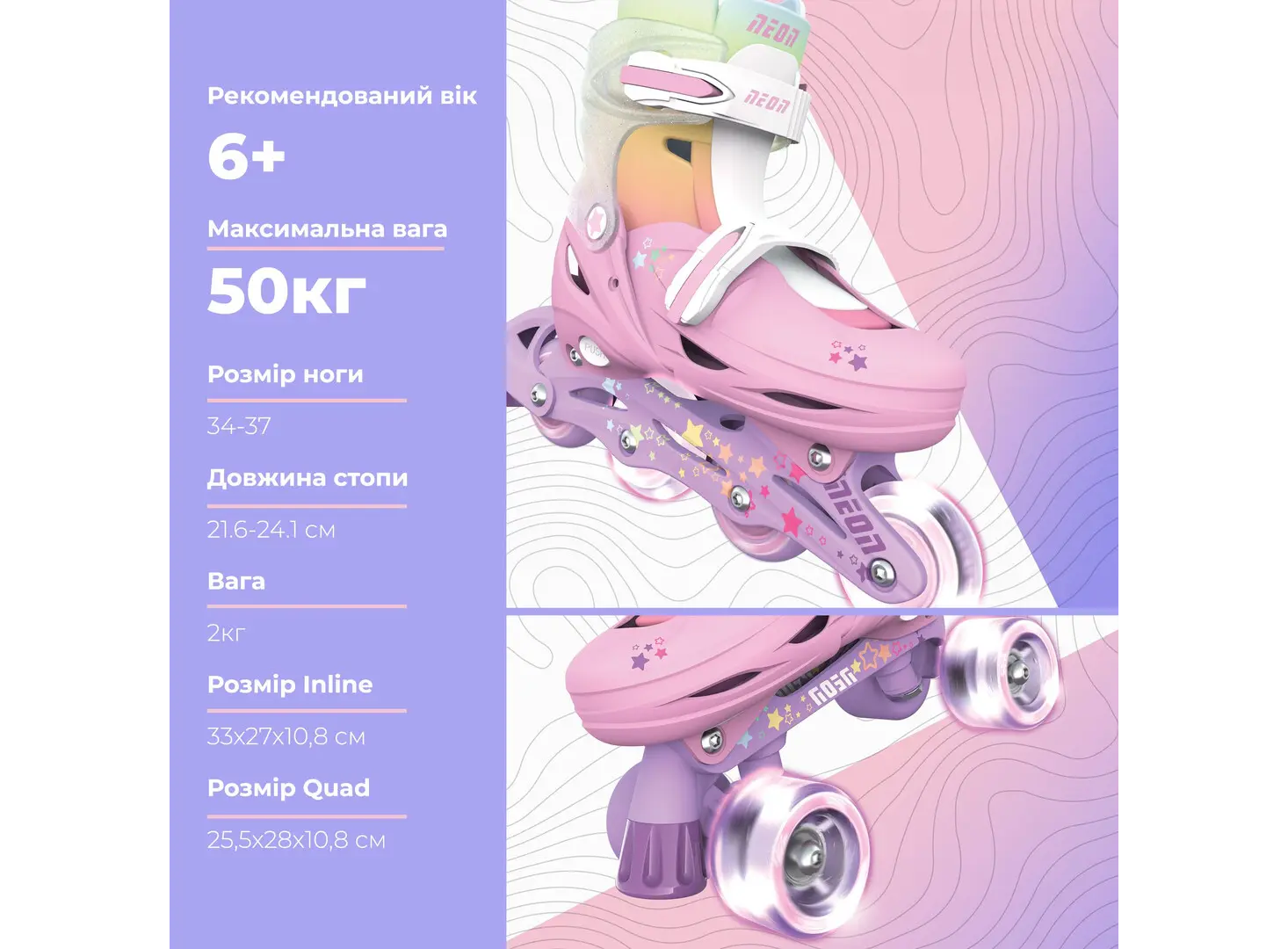 როლიკები Neon Scates Combo, size 34-37, rainbow