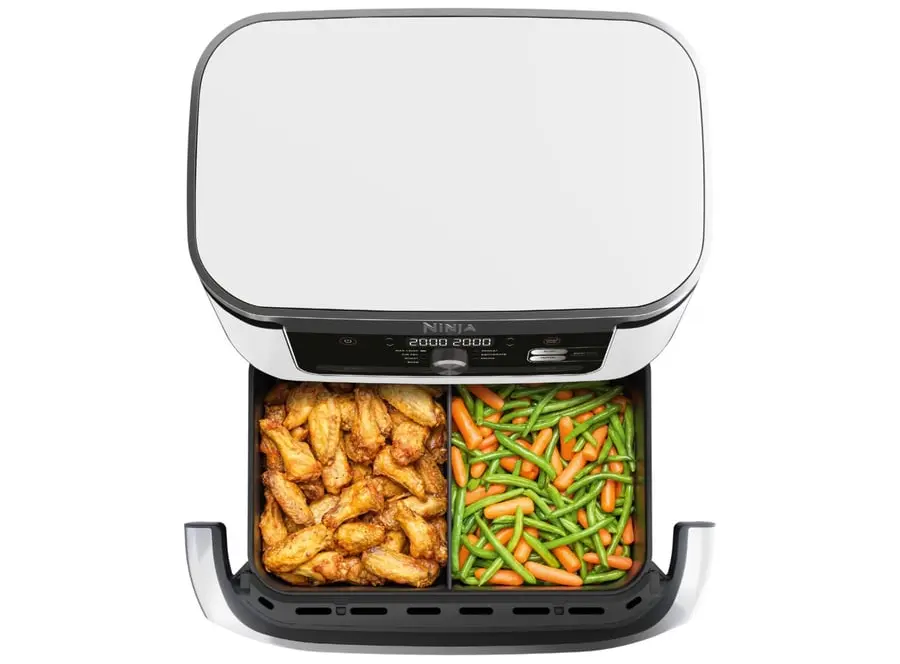 Ninja AF500EUWH არის მრავალფუნქციური აეროღუმელი (Air Fryer), რომელიც გთავაზობთ ჯანსაღი და სწრაფი მომზადების გამოცდილებას მინიმალური ცხიმით. მისი 2-კალათიანი Dual Zone ტექნოლოგია საშუალებას გაძლევთ მოამზადოთ სხვადასხვა კერძი ერთდროულად, რაც დროის დაზოგვასა და კომფორტს უზრუნველყოფს. Smart Finish და Match Cook ფუნქციები ოპტიმიზაციას უკეთებს პროცესს, რათა ორივე კალათაში მომზადებული საკვები ერთდროულად იყოს მზად. მძლავრი 2470W გათბობის სისტემა უზრუნველყოფს სწრაფ გათბობასა და თანაბარ შეწვას. 6 სხვადასხვა რეჟიმი (Air Fry, Max Crisp, Roast, Bake, Reheat, Dehydrate) გაძლევთ მრავალფეროვან სამზარეულო შესაძლებლობებს. ბევრად უფრო ჯანსაღი ალტერნატივა ტრადიციული შეწვის მეთოდებთან შედარებით, Ninja Air Fryer ამცირებს ცხიმის მოხმარებას 75%-ით, ხოლო თეთრი (White) მინიმალისტური დიზაინი იდეალურად ერგება ნებისმიერ თანამედროვე სამზარეულოს.