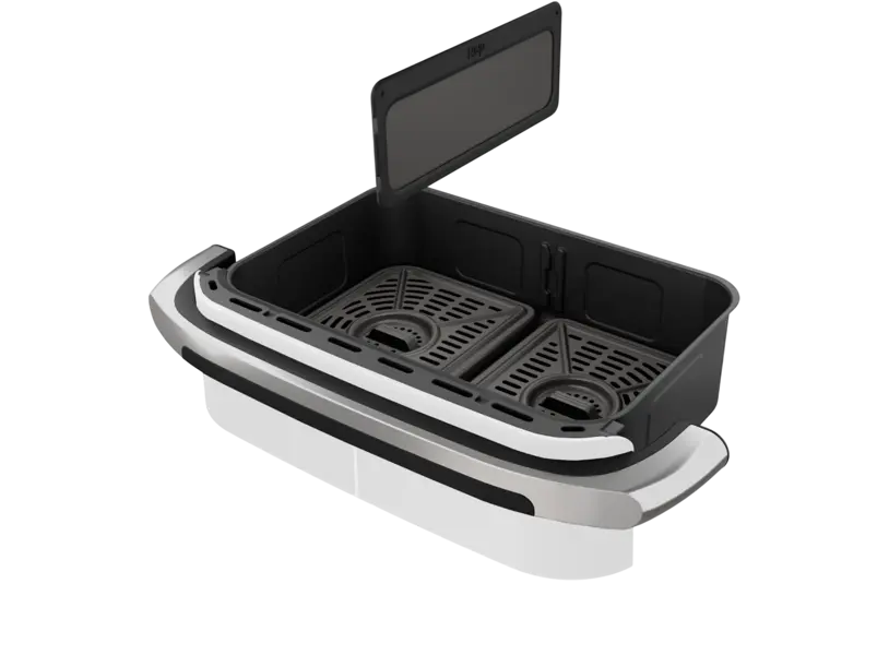 აეროგრილს აქვს დიდი 9.5 ლიტრიანი ტევადობა და არაწებვადი საფარი, რაც ამარტივებს გაწმენდასა და მოხმარებას. ციფრული სენსორული პანელი საშუალებას გაძლევთ მარტივად აკონტროლოთ ტემპერატურა და დრო, ხოლო SyncFinish ფუნქცია აერთიანებს ორ ზონას და სრულყოფილად სინქრონიზებს მზადების პროცესს.