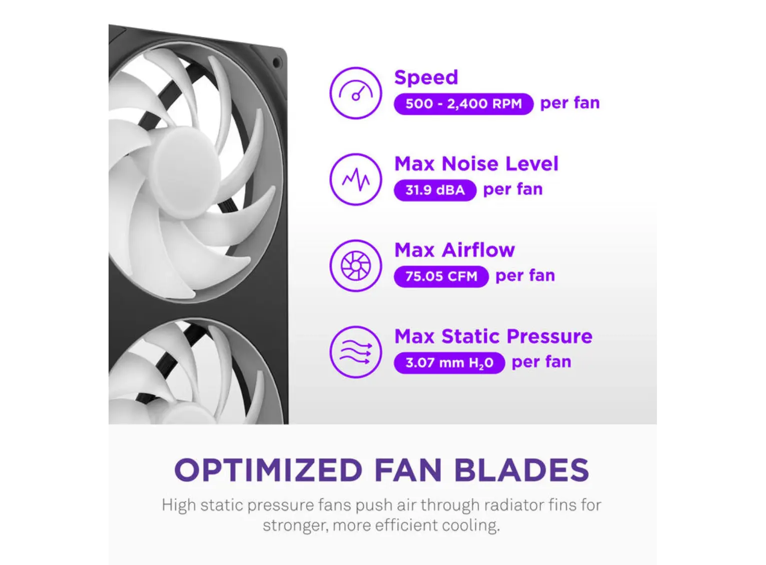 - ვენტილატორის სიჩქარე: 500-დან 2400 ბრ/წთ-მდე