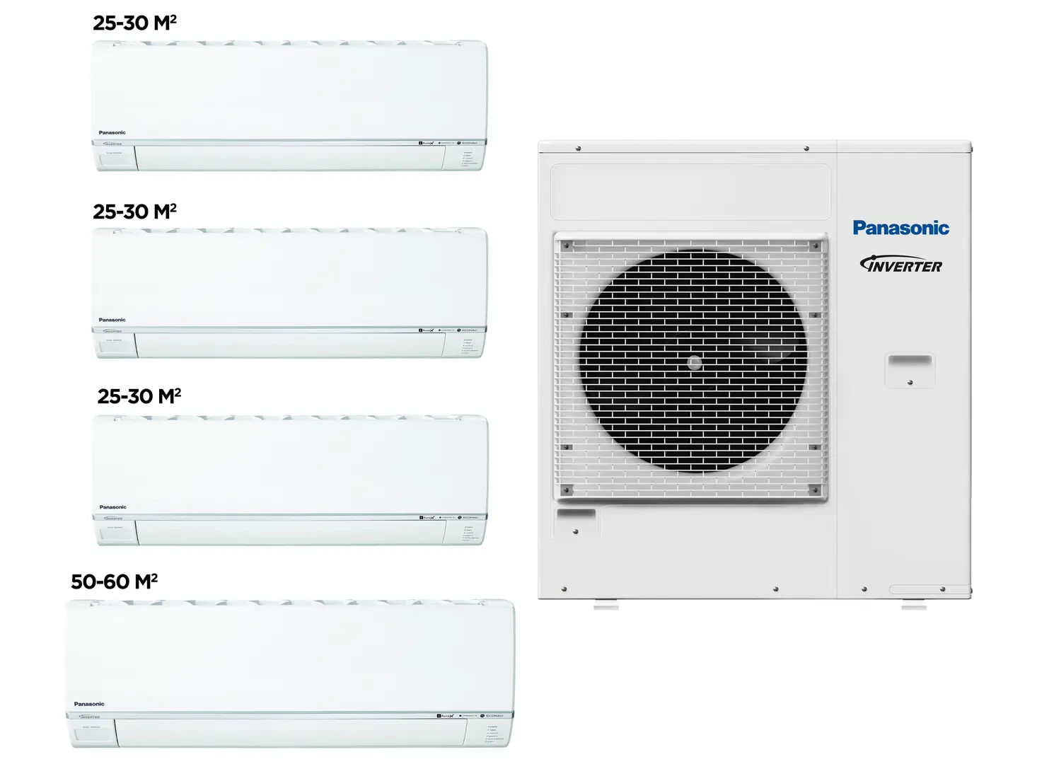 კონდიციონერი Panasonic CU-5E34PBD + CS-E9RKDW 3Pcs, CS-E18RKDW 1Pcs, Inverter, 150 - 160 კვმ2
