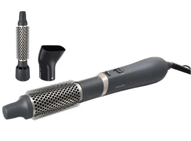 თმის საშრობი სავარცხელი PHILIPS BHA301/00 არის პრაქტიკული და კომფორტული მოწყობილობა, რომელიც აერთიანებს თმის გაშრობისა და სტაილინგის ფუნქციებს ერთში. 300 ვატიანი სიმძლავრე უზრუნველყოფს ნაზ და თანაბარ ჰაერის ნაკადს, რაც ამცირებს თმის დაზიანების რისკს და იდეალურია ყოველდღიური გამოყენებისთვის. მოწყობილობა აღჭურვილია ThermoProtect ტექნოლოგიით, რომელიც იცავს თმას გადახურებისგან და ინარჩუნებს მის ბუნებრივ სიჯანსაღეს. კომპლექტში შედის რამდენიმე სხვადასხვა თავაკი, მათ შორის დამრგვალებელი სავარცხელი მოცულობის მისაცემად და გასასწორებელი თავაკი გლუვი სტილის შესაქმნელად. იონური სისტემა ამცირებს სტატიკურ ელექტრობას და თმას მატებს ბზინვარებას. კომპაქტური და მსუბუქი დიზაინი მარტივს ხდის გამოყენებასა და ტრანსპორტირებას, რაც მას იდეალურს ხდის მოგზაურობისთვისაც. PHILIPS BHA301/00 არის სანდო არჩევანი მათთვის, ვინც ეძებს მარტივ და ეფექტურ სტაილინგის საშუალებას ერთ მოწყობილობაში.
