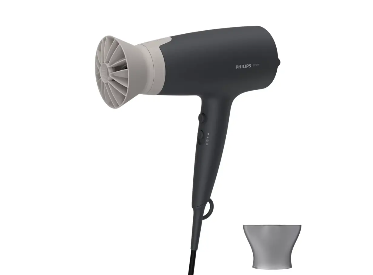 PHILIPS BHD351/10 თმის საშრობი 3000 სერიიდან უზრუნველყოფს სწრაფ და უსაფრთხო გაშრობას 2100 ვტ სიმძლავრისა და ThermoProtect ტექნოლოგიის დახმარებით, რომელიც ამცირებს ჰაერის ტემპერატურას 15°C-ით, რათა დაიცვას თმა გადახურებისგან. მოწინავე იონიზაციის სისტემა გამოყოფს 20 მილიონ იონს თითო გაშრობის სესიაზე, რაც ამცირებს სტატიკურ ელექტრობას და ანიჭებს თმას ბზინვარებას. მოწყობილობა აღჭურვილია 6 სიჩქარე/ტემპერატურის რეჟიმით, Cool Shot ფუნქციით, 14 მმ კონცენტრატორის საცმითა და ThermoProtect დანამატით. მსუბუქი და ერგონომიული დიზაინი, 1.8 მ კაბელი და ჩამოსაკიდი კაუჭი უზრუნველყოფს მოხერხებულობას ყოველდღიური გამოყენებისთვის.