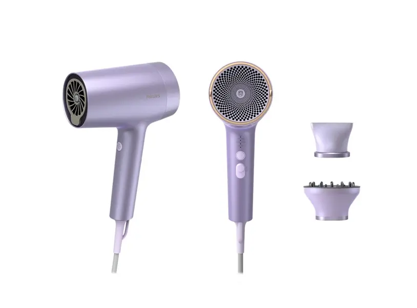 Philips BHD720/10 Series 7000 თმის საშრობი აერთიანებს ინოვაციურ ტექნოლოგიებსა და დახვეწილ დიზაინს, რაც უზრუნველყოფს სწრაფ და უსაფრთხო გაშრობას. ThermoShield Advanced ტექნოლოგია მუდმივად აკონტროლებს ჰაერის ტემპერატურას, რათა დაიცვას თმა გადახურებისგან. 1800 ვატიანი სიმძლავრე და გაუმჯობესებული ჰაერის ნაკადი უზრუნველყოფს 30%-ით უფრო სწრაფ გაშრობას. იონური მოვლის სისტემა წარმოქმნის 80 მილიონ იონს თითო გაშრობის სესიაზე, რაც ამცირებს სტატიკურობას და აძლევს თმას ბზინვარებას. წყლის იონები დამატებით ატენიანებენ თმას, ხოლო მინერალური იონები იცავენ მას UV სხივების ზემოქმედებისგან. მოწყობილობა გთავაზობთ 4 ტემპერატურის და 2 სიჩქარის რეჟიმს, ასევე ცივი ჰაერის ფუნქციას სტილის დასაფიქსირებლად. კომპლექტში შედის მაგნიტური კონცენტრატორი და დიფუზორი, რაც ამარტივებს სხვადასხვა სტილის შექმნას. მსუბუქი და ერგონომიული დიზაინი უზრუნველყოფს კომფორტულ გამოყენებას ყოველდღიურად.