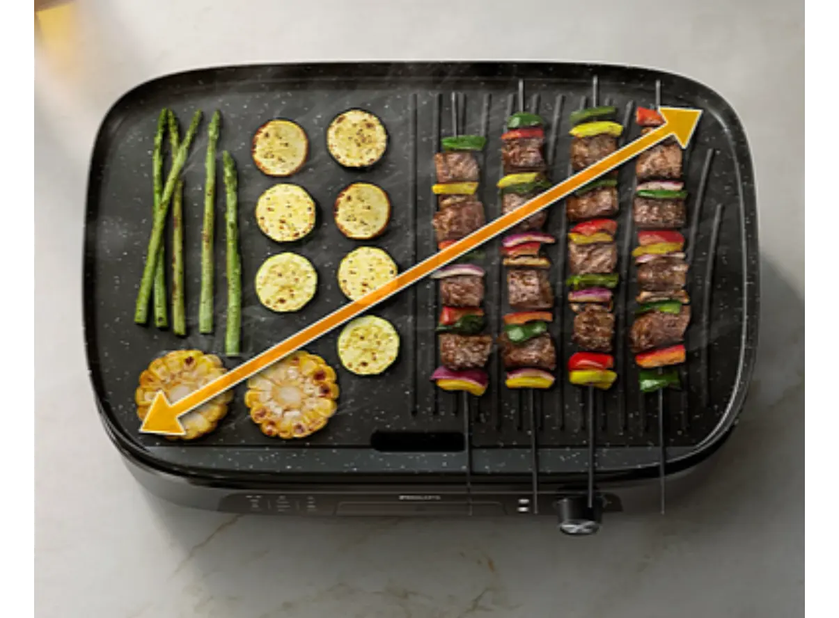მოაწყვეთ დაუვიწყარი ბარბექიუ სახლის პირობებში Philips-ის მძლავრი ელექტრო გრილით. ეს კომპაქტური და ფუნქციური მოწყობილობა საშუალებას გაძლევთ, მოამზადოთ წვნიანი სტეიკი, არომატული თევზი და ხრაშუნა ბოსტნეული ზედმეტი ცხიმის გარეშე. გრილის ზედაპირი დამუშავებულია სპეციალური მიმწვრობის საწინააღმდეგო საფარით, რაც უზრუნველყოფს პროდუქტის იდეალურ შეწვას და ამარტივებს წმენდის პროცესს. მაღალი ტემპერატურის სწრაფი მიღწევა ხორცის ფორებს მყისიერად ხურავს, რითაც ინარჩუნებს მის ბუნებრივ წვენსა და არომატს. ზედმეტი ცხიმი სპეციალურ სადგამში გროვდება, რაც თქვენს კერძს უფრო ჯანსაღსა და დიეტურს ხდის. რეგულირებადი თერმოსტატი საშუალებას გაძლევთ, ზუსტად შეარჩიოთ სასურველი ტემპერატურა სხვადასხვა ინგრედიენტისთვის. მოხსნადი ნაწილების გარეცხვა ჭურჭლის სარეცხ მანქანაშიც შესაძლებელია. შეიძინეთ ეს პრაქტიკული ტექნიკა დღესვე და შეიქმენით პიკნიკის განწყობა ნებისმიერ ამინდში.