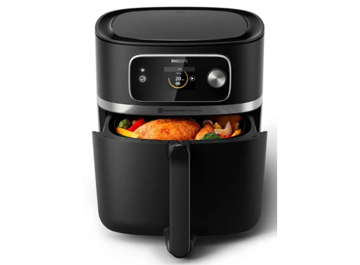 აღმოაჩინეთ კულინარიის მომავალი Philips Airfryer Combi XXL-თან ერთად. ეს ინოვაციური აეროგრილი იყენებს Rapid CombiAir ტექნოლოგიას, რომელიც ავტომატურად არეგულირებს ჰაერის ნაკადის სიჩქარეს კერძის სირთულის მიხედვით, რაც უზრუნველყოფს გარედან ხრაშუნა, ხოლო შიგნით წვნიან სტრუქტურას. ინტეგრირებული საკვების თერმომეტრი საშუალებას გაძლევთ, ხორცი და თევზი სასურველ დონეზე მოამზადოთ, იქნება ეს სისხლიანი სტეიკი თუ კარგად შემწვარი ქათამი. 8.3 ლიტრიანი XXL მოცულობა იდეალურია დიდი ოჯახებისთვის, ხოლო მობილურ აპლიკაციასთან სინქრონიზაცია მზადების პროცესს სრულად ავტომატიზებულს ხდის. დაზოგეთ დრო და ელექტროენერგია ღუმელთან შედარებით და იკვებეთ ჯანსაღად ზედმეტი ცხიმის გარეშე. 22-ზე მეტი ფუნქცია ერთ მოწყობილობაში თქვენს სამზარეულოს შეცვლის. შეიძინეთ დღესვე და აქციეთ მზადება სიამოვნებად.