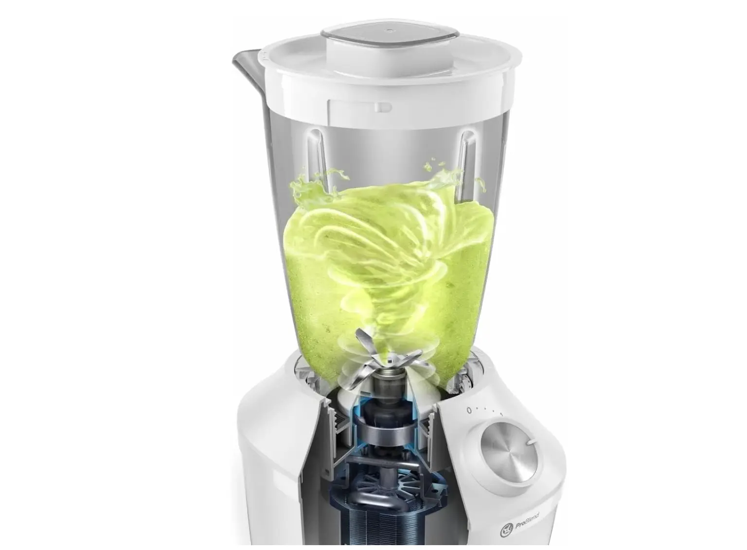 ფილიპსის აღნიშნული ბლენდერი შექმნილია იმისათვის, რომ მაქსიმალურად გაამარტივოს ჯანსაღი სასმელებისა და კერძების მომზადების პროცესი. მოწყობილობა აღჭურვილია მძლავრი ძრავითა და უნიკალური პირებით, რომლებიც უზრუნველყოფენ ინგრედიენტების თანაბარ და ერთგვაროვან დაქუცმაცებას სულ რაღაც რამდენიმე წამში. მისი ტევადი და მყარი კონტეინერი საშუალებას გაძლევთ მოამზადოთ დიდი პორციები მთელი ოჯახისთვის. ინოვაციური ტექნოლოგია თავიდან აცილებს ნარჩენების წარმოქმნას და გარანტიას იძლევა გლუვი ტექსტურის მისაღებად, იქნება ეს ხილის კოქტეილი, სოუსი თუ ყინულის მსხვრევა. მოწყობილობის მართვა არის ძალიან მარტივი და ინტუიციური, ხოლო სიჩქარის რეგულირების ფუნქცია გაძლევთ საშუალებას შეარჩიოთ ოპტიმალური რეჟიმი სასურველი შედეგისთვის. კომპაქტური დიზაინი და მოსახსნელი ნაწილები, რომლებიც ჭურჭლის სარეცხ მანქანაშიც ირეცხება, ხდის მის მოვლას ძალიან კომფორტულს. აირჩიეთ ფილიპსის საიმედოობა და ისიამოვნეთ ვიტამინებით სავსე კერძებით ყოველდღიურად.