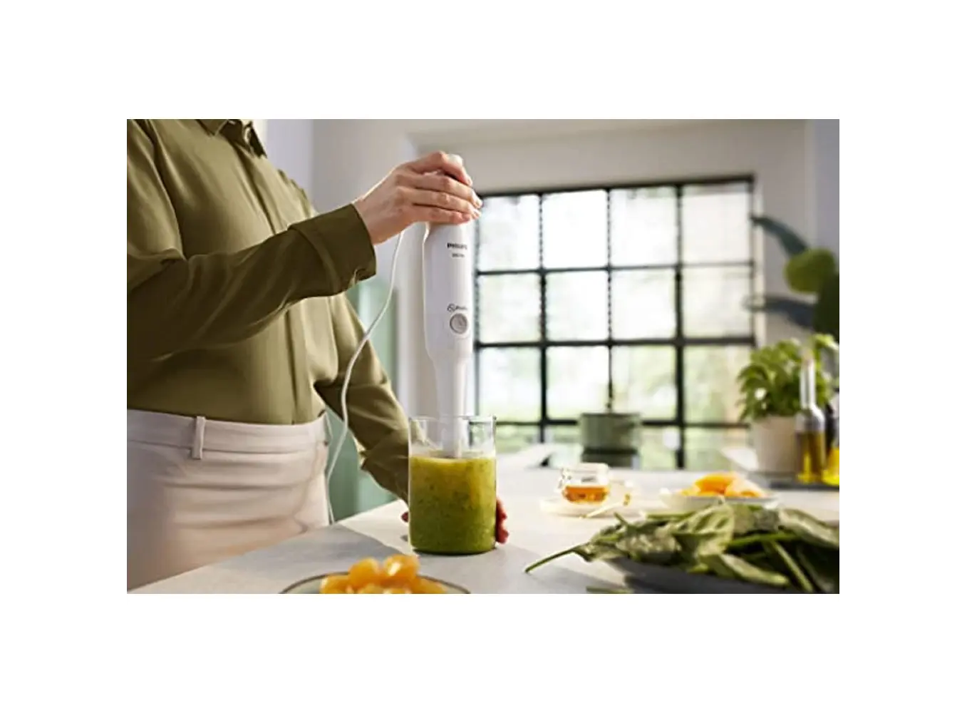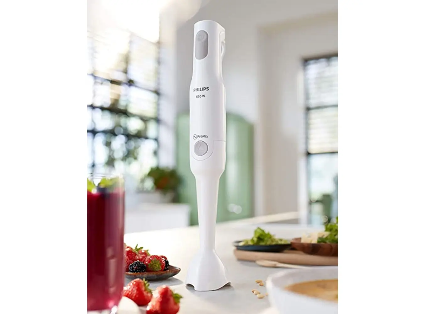PHILIPS HR2531/00 ხელის ბლენდერი 5000 სერიიდან გთავაზობთ სწრაფ და ეფექტურ შერევას ერთი ღილაკის დაჭერით. მისი 650 ვტ სიმძლავრის ძრავა უზრუნველყოფს ინგრედიენტების თანაბარ და სწრაფ დამუშავებას. ProMix ტექნოლოგია, რომელიც განვითარებულია შტუტგარტის უნივერსიტეტთან თანამშრომლობით, იყენებს უნიკალურ სამკუთხა ფორმას ოპტიმალური საკვების ნაკადის შესაქმნელად და მაქსიმალური შესრულებისთვის. სპეციალური ტალღოვანი ფორმის Anti-Splash დაცვა ხელს უშლის შხეფებს შერევისას, ხოლო ერგონომიული დიზაინი უზრუნველყოფს კომფორტულ და უსაფრთხო გამოყენებას. მოწყობილობა აღჭურვილია მოსახსნელი პლასტმასის შერევის ღეროთი და 500 მლ მოცულობის ჭურჭლით. მისი კომპაქტური ზომა და მარტივი წმენდა ხდის მას იდეალურ არჩევანს ყოველდღიური გამოყენებისთვის.