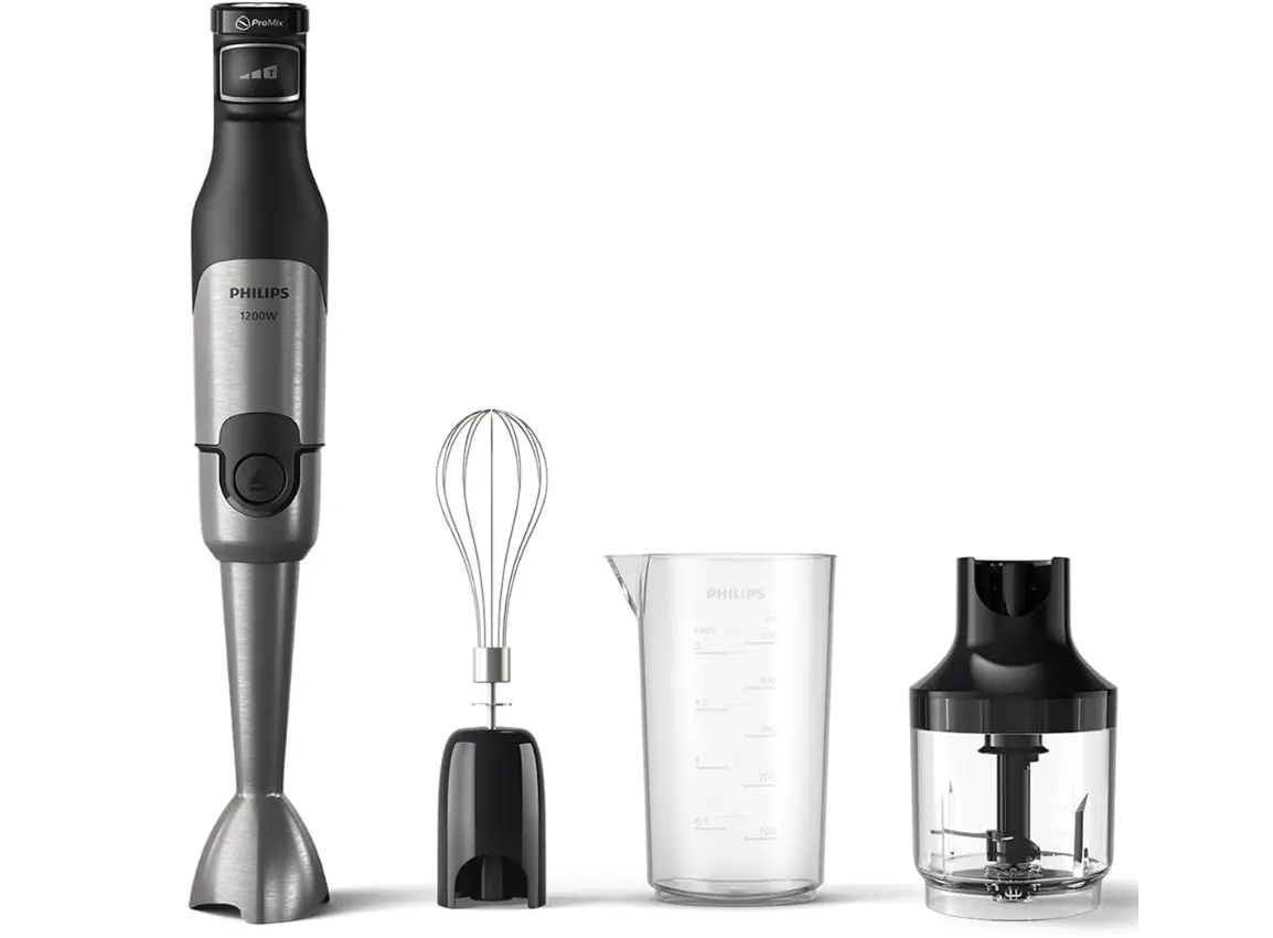 გაამარტივეთ კულინარიული პროცესი Philips 5000 სერიის ხელის ბლენდერით, რომელიც გამოირჩევა ბაზარზე ერთ-ერთი ყველაზე მძლავრი, 1200-ვატიანი ძრავით. ეს მოდელი უზრუნველყოფს ნებისმიერი სირთულის ინგრედიენტის, მათ შორის თხილეულისა და გაყინული ხილის წამებში დამუშავებას. უნიკალური ProMix ტექნოლოგია ქმნის ინგრედიენტების ოპტიმალურ ნაკადს, რაც გარანტიას გაძლევთ, რომ მიიღებთ იდეალურად ერთგვაროვან მასას შხეფების გარეშე. ინტუიციური SpeedTouch ღილაკი საშუალებას გაძლევთ, სიჩქარე თითის დაჭერის სიძლიერის მიხედვით აკონტროლოთ და ნელ-ნელა გაზარდოთ სიმძლავრე. კომპლექტაციაში შემავალი აქსესუარები იდეალურია მწვანილის, ხახვისა და ხორცის დასაქუცმაცებლად, ასევე ნაღების ან კვერცხის გასათქვეფად. ერგონომიული დიზაინი და ღილაკზე ერთი დაჭერით ცვლადი თავაკები ექსპლუატაციას მაქსიმალურად კომფორტულს ხდის. შეიძინეთ ეს მრავალფუნქციური დამხმარე დღესვე და გადაიყვანეთ კერძების მომზადება ახალ დონეზე.
