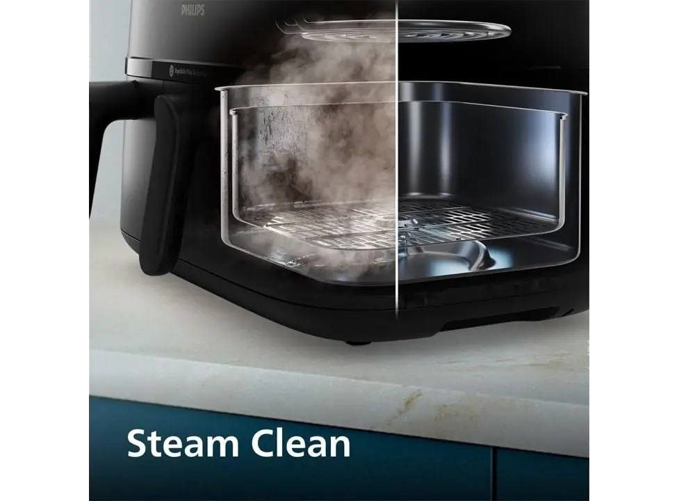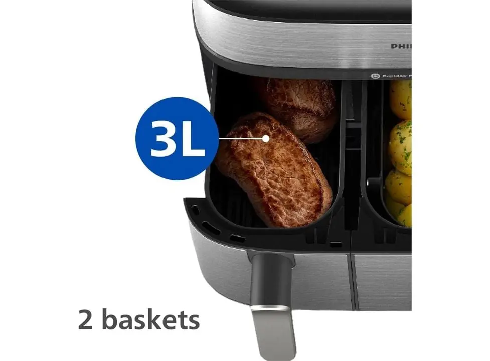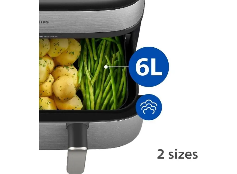 აეროგრილი PHILIPS NA555/09 არის თანამედროვე სამზარეულოს მოწყობილობა, რომელიც საშუალებას გაძლევთ სწრაფად და ჯანსაღად მოამზადოთ სხვადასხვა კერძი მინიმალური ზეთის გამოყენებით. ინოვაციური Rapid Air ტექნოლოგია უზრუნველყოფს ცხელი ჰაერის თანაბარ ცირკულაციას, რის შედეგადაც საკვები მიიღება ხრაშუნა ზედაპირით და ნაზი შიგთავსით. მოწყობილობას აქვს დიდი მოცულობის კალათა, რაც იდეალურია მთელი ოჯახის ან სტუმრებისათვის ერთდროულად კერძის მოსამზადებლად. ინტუიციური კონტროლის პანელი, სხვადასხვა ავტომატური პროგრამა და ტემპერატურის რეგულირების შესაძლებლობა ამარტივებს ყოველდღიურ გამოყენებას. PHILIPS NA555/09 მარტივად იწმინდება, მისი მოხსნადი ნაწილები თავსებადია ჭურჭლის სარეცხ მანქანასთან, რაც დროს და ძალისხმევას გიზოგავთ. კომპაქტური და ელეგანტური დიზაინი ნებისმიერ სამზარეულოსთან იდეალურად ერწყმის, ხოლო ენერგოეფექტური მუშაობა თქვენს ბიუჯეტსაც დაზოგავს.