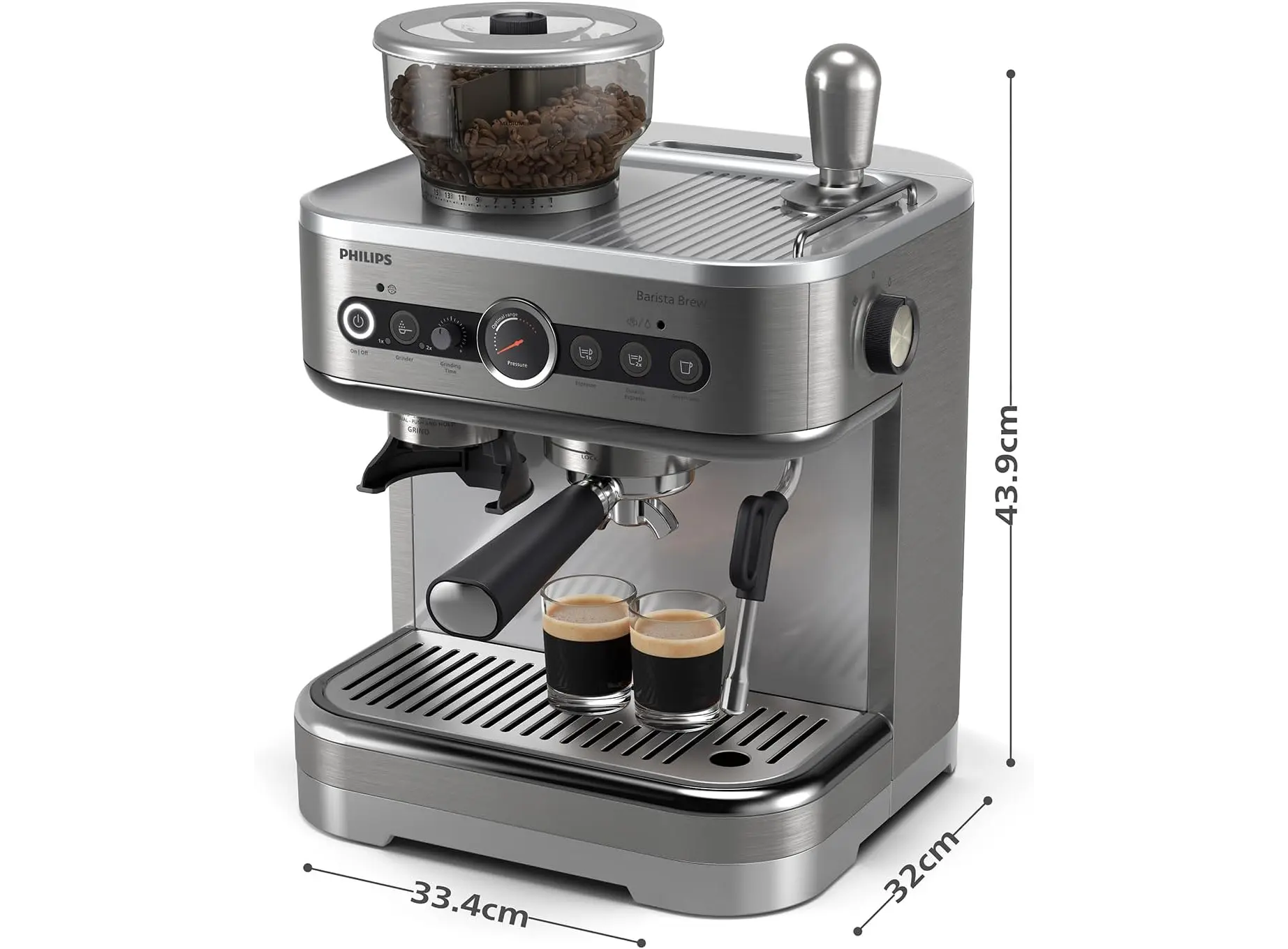 გახდით საკუთარი თავის ბარისტა Philips Barista Brew PSA3228/01-თან ერთად. ეს ნახევრად ავტომატური ესპრესოს აპარატი აერთიანებს პროფესიონალურ შესაძლებლობებსა და სახლის კომფორტს. ჩაშენებული კონუსური საფქვავი 15 დონიანი რეგულირებით უზრუნველყოფს მარცვლების იდეალურ დაფქვას უშუალოდ მომზადების წინ, რაც არომატის შენარჩუნების გარანტიაა. 58 მილიმეტრიანი უჟანგავი ფოლადის პორტაფილტრი და წნევის მაჩვენებელი (მანომეტრი) საშუალებას გაძლევთ, ზუსტად აკონტროლოთ ექსტრაქციის პროცესი და მიიღოთ სქელი, ოქროსფერი ქაფი. მძლავრი ორთქლის მილი და კომპლექტაციაში არსებული რძის სადგამი იდეალურია ლატე არტისა და კაპუჩინოს მოსამზადებლად, ხოლო Americano-ს ღილაკი ცხელი წყლის დამატებით ფუნქციას ააქტიურებს. დახვეწილი მეტალის კორპუსი და ინტუიციური მართვა თქვენს სამზარეულოს ნამდვილ კაფედ გადააქცევს. შეიძინეთ დღესვე და ისიამოვნეთ უმაღლესი ხარისხის ყავით.