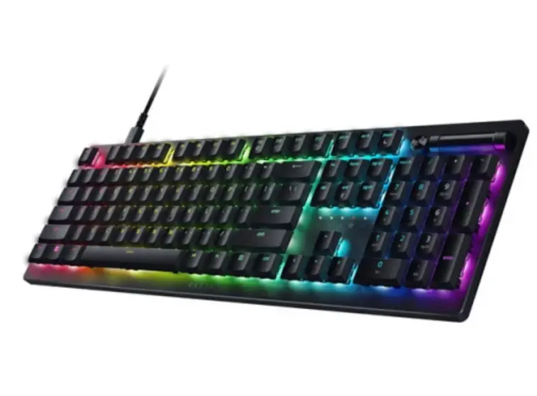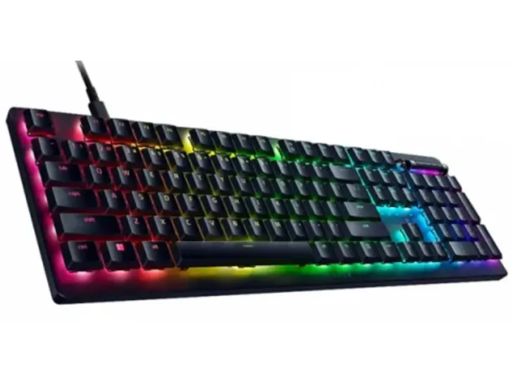 Razer DeathStalker V2 არის მექანიკური კლავიატურა, რომელიც აერთიანებს მაღალპროფესიულ დიზაინს, სიჩქარეს და გამძლეობას. აღჭურვილია Red Switch მექანიზმებით, რაც უზრუნველყოფს სწრაფ და ჩუმ დაწოლას, იდეალურია როგორც გეიმინგისთვის, ასევე სამუშაოდ. კლავიატურა გამოირჩევა სრულყოფილი RGB განათებით, რომელიც სრულად კონტროლირდება Razer Synapse პროგრამით. 105 კლავიშიანი განლაგება (EN/RU) იძლევა კომფორტულ და მრავალფუნქციურ გამოყენებას. USB-A კავშირი უზრუნველყოფს მარტივ შეერთებას სხვადასხვა მოწყობილობასთან. ელეგანტური შავი დიზაინი აერთიანებს სტილს და ფუნქციურობას, რაც მას სრულყოფილ არჩევანს ხდის მათთვის, ვინც ეძებს მაღალი ხარისხის მექანიკურ კლავიატურას.
