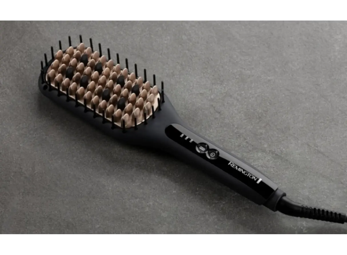 Remington-ის ინოვაციური თმის უთო-სავარცხელი Straight Brush წარმოადგენს რევოლუციურ გადაწყვეტილებას მათთვის, ვისაც სურს თმის სწრაფი გასწორება ბუნებრივი მოცულობის შენარჩუნებით. მოწყობილობა აერთიანებს სავარცხლისა და თმის უთოს ფუნქციებს, რაც საშუალებას გაძლევთ დაივარცხნოთ და გაისწოროთ თმა ერთი მოძრაობით. კერამიკული დაფარვის მქონე კბილანები უზრუნველყოფენ თმის გლუვ სრიალს დაზიანების გარეშე, ხოლო ანტისტატიკური ტექნოლოგია ეფექტურად ებრძვის დაელექტროებას და ანიჭებს თმას აბრეშუმისებრ ბზინვარებას. ციფრული დისპლეი სამი სხვადასხვა ტემპერატურული რეჟიმით (150°C, 190°C, 230°C) საშუალებას გაძლევთ შეარჩიოთ ოპტიმალური სიმძლავრე თქვენი თმის ტიპის შესაბამისად. სწრაფი გაცხელების ფუნქცია სულ რაღაც 30 წამში ამზადებს მოწყობილობას მუშაობისთვის. ერგონომიული დიზაინი, ავტომატური გათიშვის სისტემა და მოსახერხებელი მბრუნავი სადენი პროცესს მაქსიმალურად კომფორტულს ხდის. შეიძინეთ Remington-ის მრავალფუნქციური სტაილერი და დაზოგეთ დრო ყოველდღიური თავის მოვლის რუტინაში. დაამატეთ კალათაში და ისარგებლეთ საუკეთესო პირობებით.