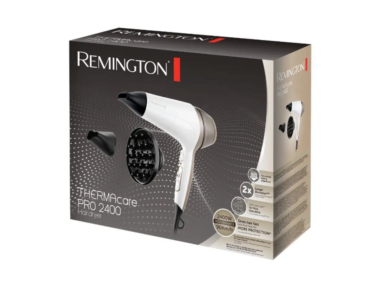 Remington-ის მძლავრი და ერგონომიული თმის საშრობი Thermacare Pro სერიიდან შექმნილია მათთვის, ვისაც სურს თმის სწრაფი გაშრობა მაქსიმალური დაცვით. 2200 ვატი სიმძლავრის ეფექტურობა შერწყმულია დაბალი ტემპერატურის რეჟიმთან, რაც უზრუნველყოფს თმის ნაკლებ დაზიანებას და ინარჩუნებს მის ბუნებრივ სტრუქტურას. მოწყობილობა აღჭურვილია იონური კონდიცირების სისტემით, რომელიც ეფექტურად ებრძვის თმის დაელექტროებას და ანიჭებს მას განსაკუთრებულ ბზინვარებასა და აბრეშუმისებრ სირბილეს. სტაილერს აქვს ტემპერატურისა და სიჩქარის რამდენიმე რეჟიმი, რაც საშუალებას გაძლევთ მოარგოთ ის თქვენი თმის ტიპს, ხოლო ცივი ჰაერის ფუნქცია დაგეხმარებათ ვარცხნილობის ფორმის ხანგრძლივ ფიქსაციაში. კომპლექტში შემავალი კონცენტრატორი და დიფუზორი იდეალურია როგორც სწორი, ისე ხვეული თმის მოსაწესრიგებლად. ერგონომიული და მსუბუქი დიზაინი პროცესს მაქსიმალურად კომფორტულს ხდის. შეიძინეთ Remington-ის პრემიუმ ხარისხის თმის საშრობი და ისიამოვნეთ ჯანსაღი და მოვლილი თმით ყოველდღე. დაამატეთ კალათაში და ისარგებლეთ საუკეთესო პირობებით.
