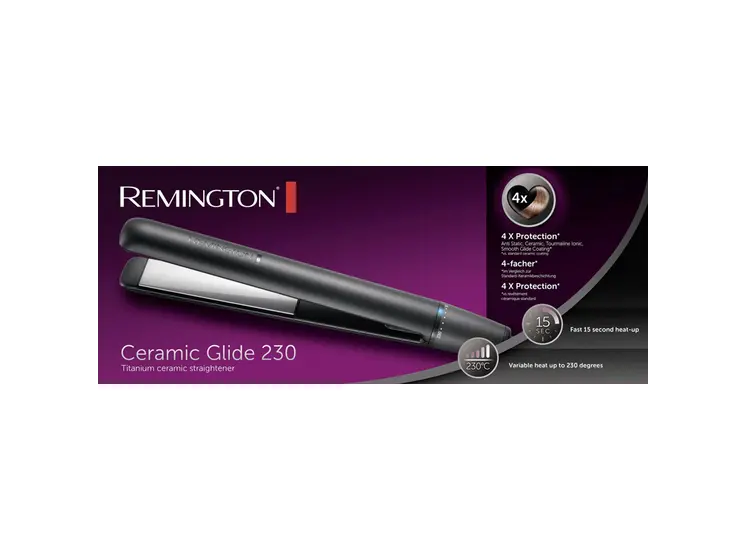Remington S3700 E51 Ceramic Glide 230 არის იდეალური თმის გასასწორებელი, რომელიც გაძლევთ უნაკლო და გლუვი შედეგის მიღწევის შესაძლებლობას. მისი მოწინავე კერამიკული ფირფიტები უზრუნველყოფს თანაბარ გათბობას და იცავს თმას გადახურებისგან. 230°C-მდე სწრაფი გაცხელება და 4X დაცვის ტექნოლოგია (ანტისტატიკური, კერამიკული, ტურმალინის შემცველი და გლუვი საფარი) ხელს უწყობს თმის დატენიანებას და იცავს მას დაზიანებისგან. 30 წამის განმავლობაში მზადყოფნის ფუნქცია და რეგულირებადი ტემპერატურა საშუალებას გაძლევთ მოარგოთ თქვენი თმის ტიპს. იდეალურია ყოველდღიური გამოყენებისთვის, ადვილად მოსახმარი და გამძლე დიზაინით.