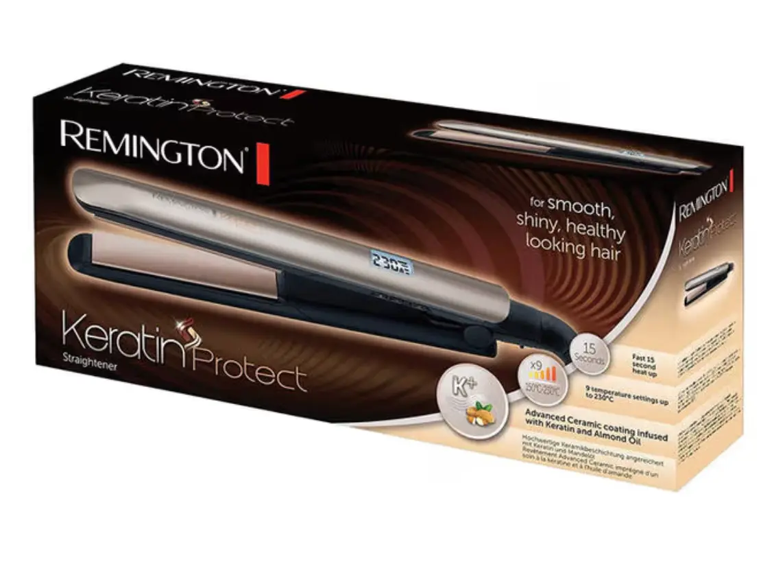 Remington-ის ინოვაციური თმის გასასწორებელი Keratin Protect სერიიდან შექმნილია მათთვის, ვისაც სურს იდეალურად სწორი თმა მაქსიმალური დაცვით. მოწყობილობა აღჭურვილია მოწინავე კერამიკული ფირფიტებით, რომლებიც გაჟღენთილია კერატინისა და ნუშის ზეთის მიკროკონდიციონერებით. გაცხელებისას ეს ნივთიერებები თანაბრად გადადის თმაზე, რაც უზრუნველყოფს მის გაჯანსაღებას და ანიჭებს მას განსაკუთრებულ ბზინვარებას. ციფრული დისპლეი 9 სხვადასხვა რეჟიმით საშუალებას გაძლევთ შეარჩიოთ ოპტიმალური ტემპერატურა 150-დან 230 გრადუსამდე თქვენი თმის ტიპის შესაბამისად. Pro+ პარამეტრი კი ავტომატურად აყენებს ტემპერატურას 185 გრადუსზე ჯანსაღი და უსაფრთხო მოვლისთვის. სწრაფი გაცხელების ფუნქცია ზოგავს დროს, ხოლო მბრუნავი სადენი პროცესს მაქსიმალურად კომფორტულს ხდის. შეიძინეთ Remington-ის პრემიუმ ხარისხის სტაილერი და ისიამოვნეთ სალონური ეფექტით სახლის პირობებში. დაამატეთ პროდუქტი კალათაში და მიიღეთ საუკეთესო მოვლა თქვენი თმისთვის ყოველდღე.