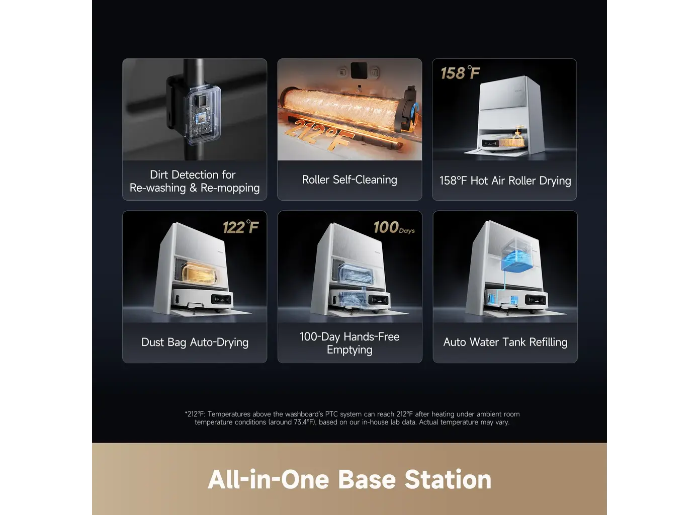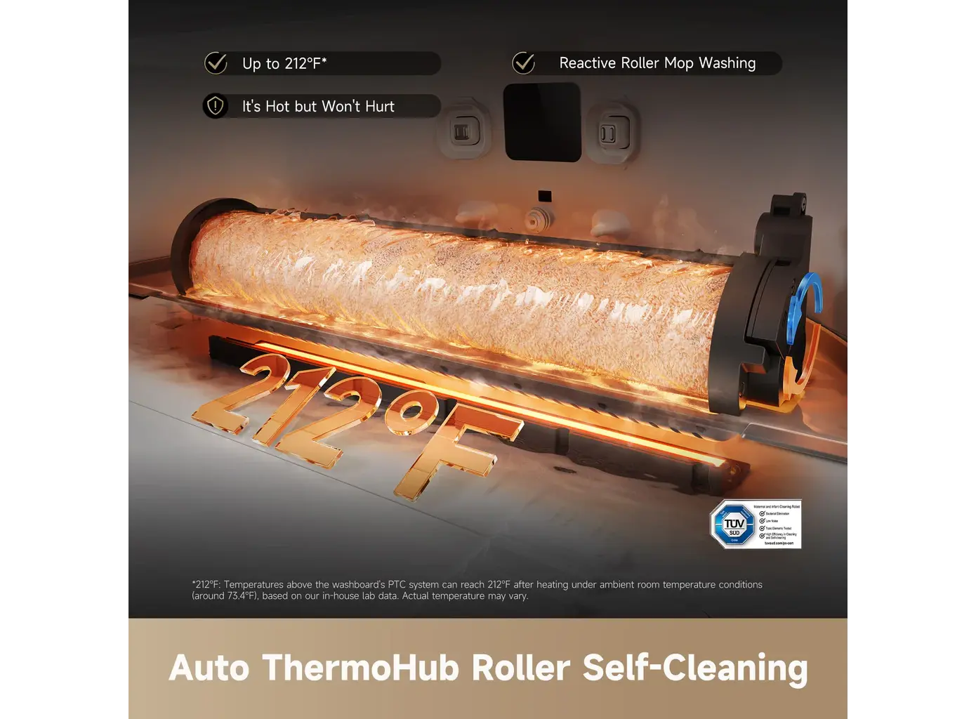 - 100°C ThermoHub™ Cleaning: ბაზა ავტომატურად რეცხავს როლერს 100°C ტემპერატურის წყლით, რაც ეფექტურად აშორებს ცხიმს და ლაქებს, შემდეგ კი აშრობს მას ცხელი ჰაერით ბაქტერიების გამრავლების თავიდან ასაცილებლად.