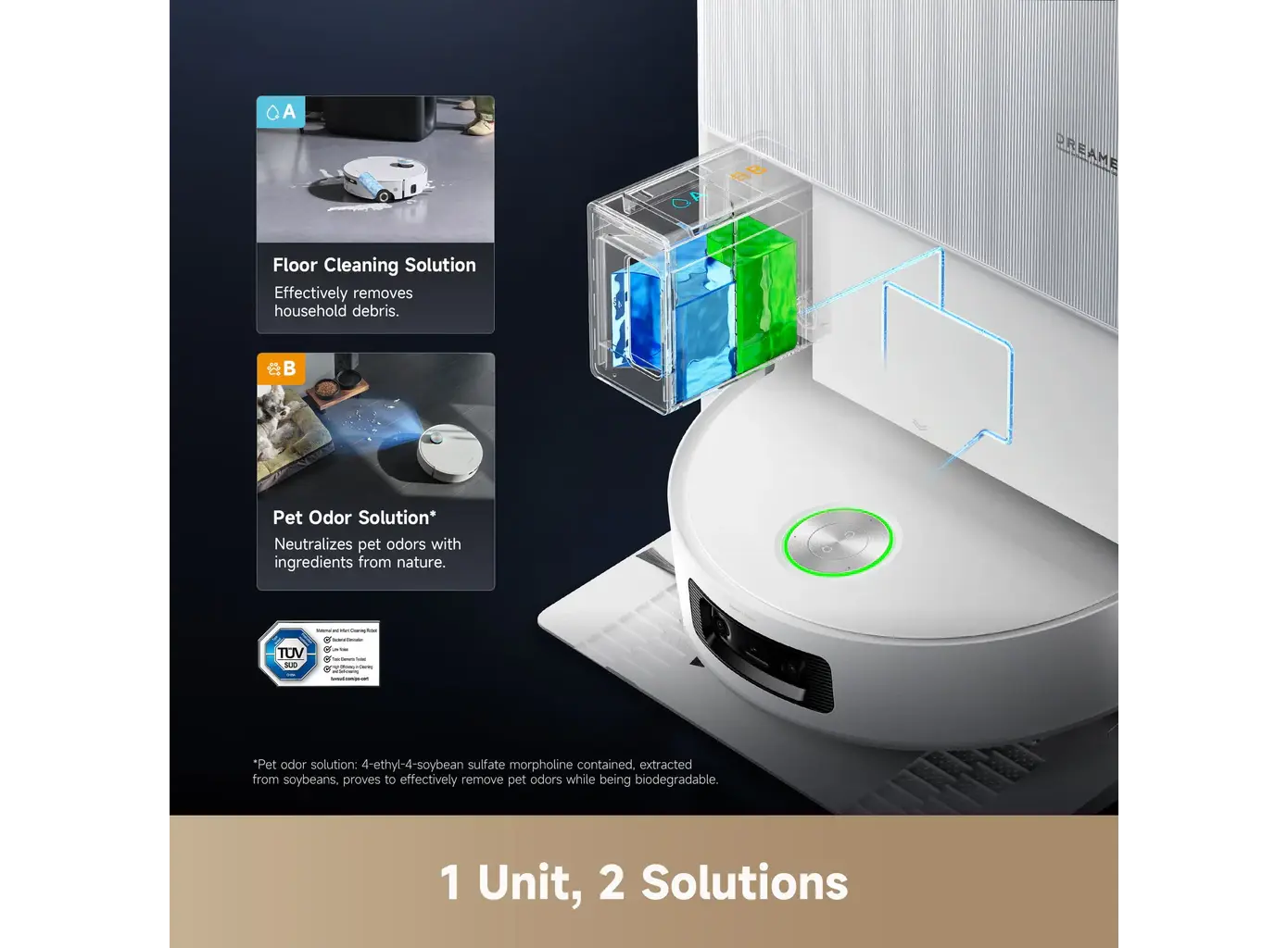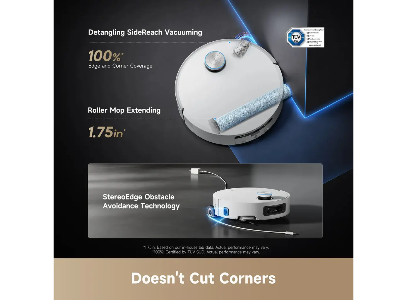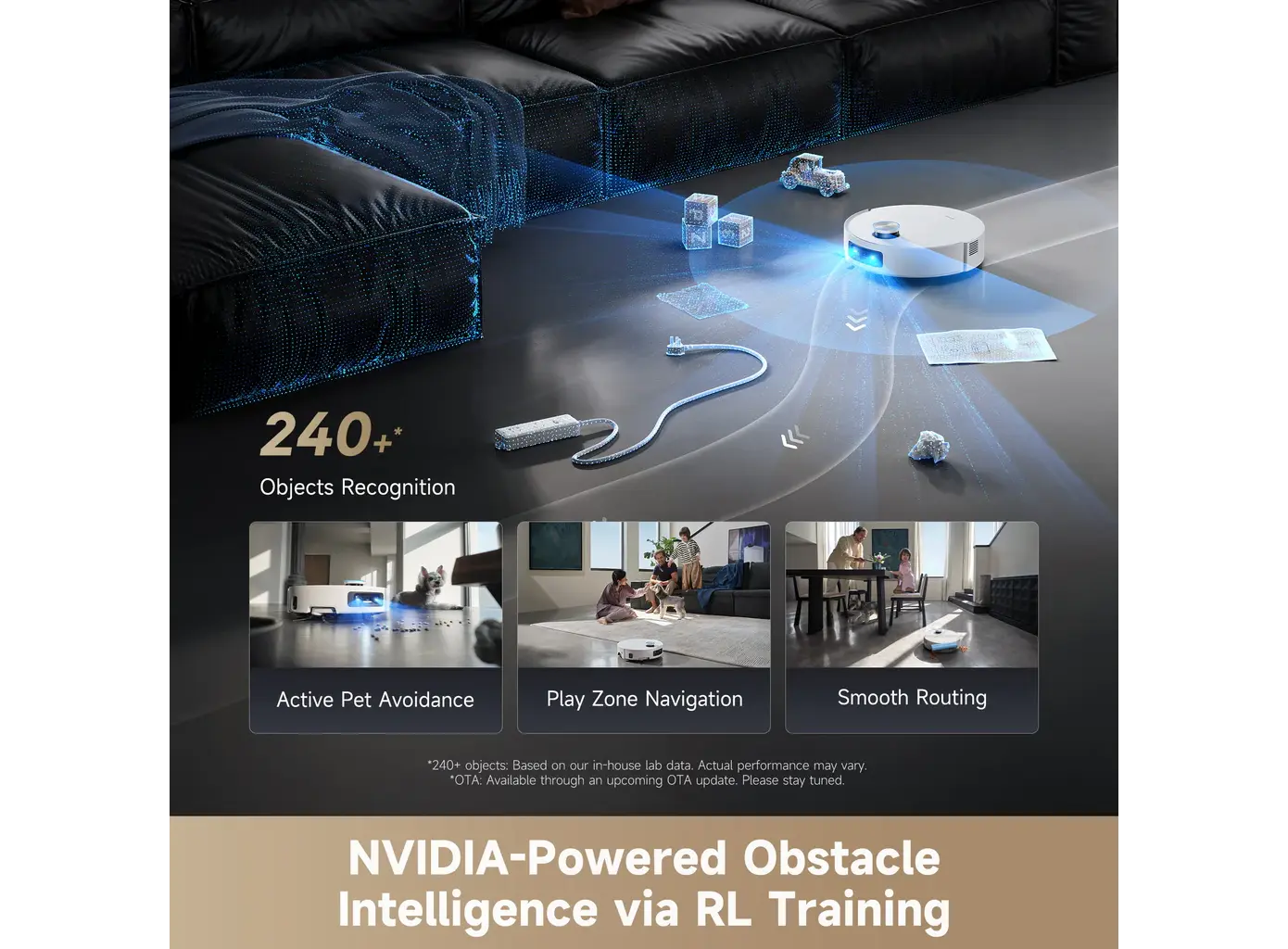 - OmniSight™ 2.0 & VersaLift™ LDS: ნავიგაციისთვის იყენებს ჩასაწევ (retractable) LiDAR სენსორს, რაც რობოტს საშუალებას აძლევს შევიდეს დაბალი ავეჯის ქვეშ. AI კამერები და 3D სენსორები კი უზრუნველყოფენ 240-ზე მეტი ტიპის ობიექტის ამოცნობასა და გვერდის ავლას.