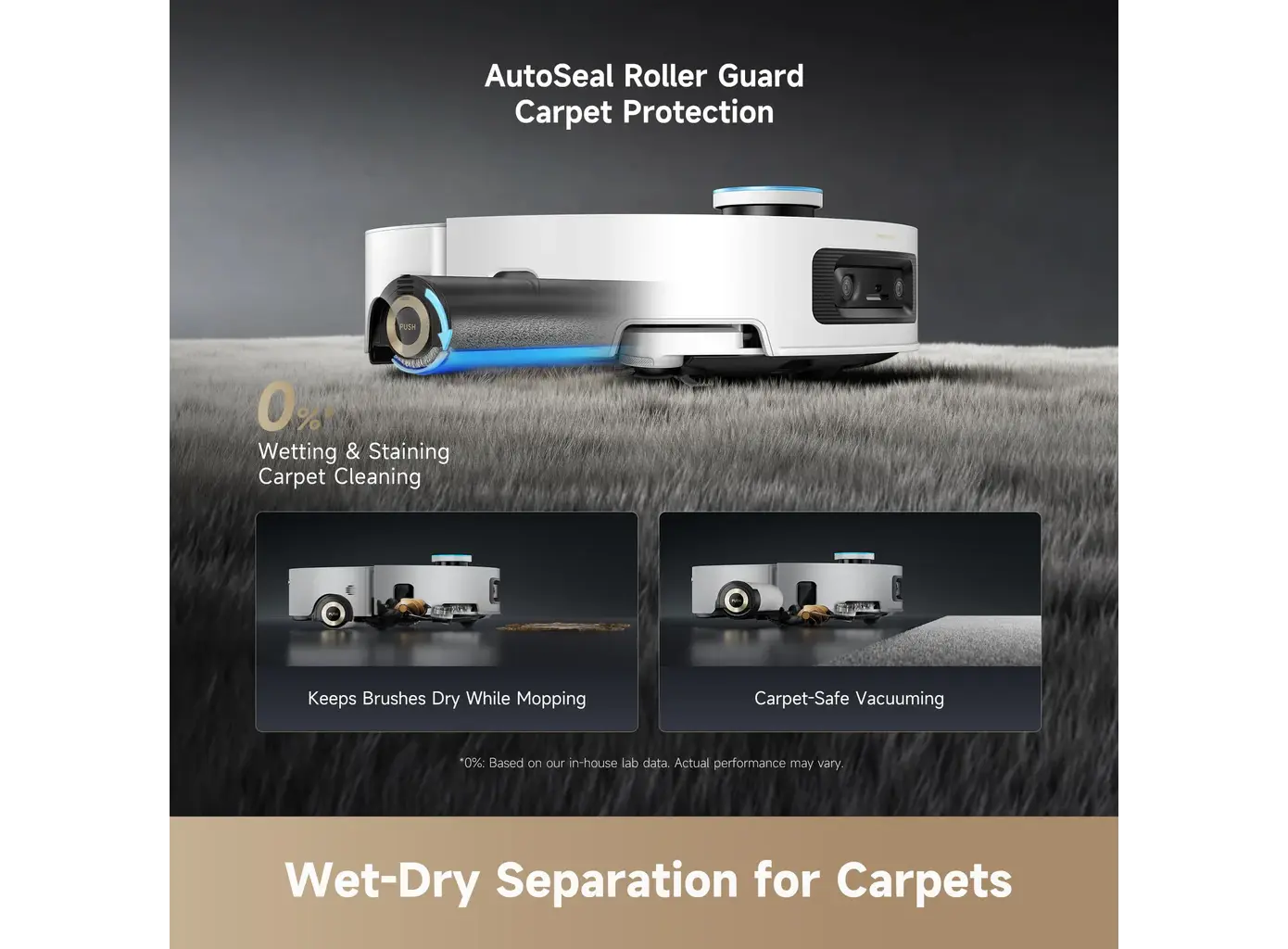 - AutoSealer™ Rollerguard: ხალიჩის ამოცნობისას, რობოტი ავტომატურად ხურავს და მალავს სველ როლერს კორპუსში, რათა ხალიჩა არ დასველდეს და არ დაზიანდეს.