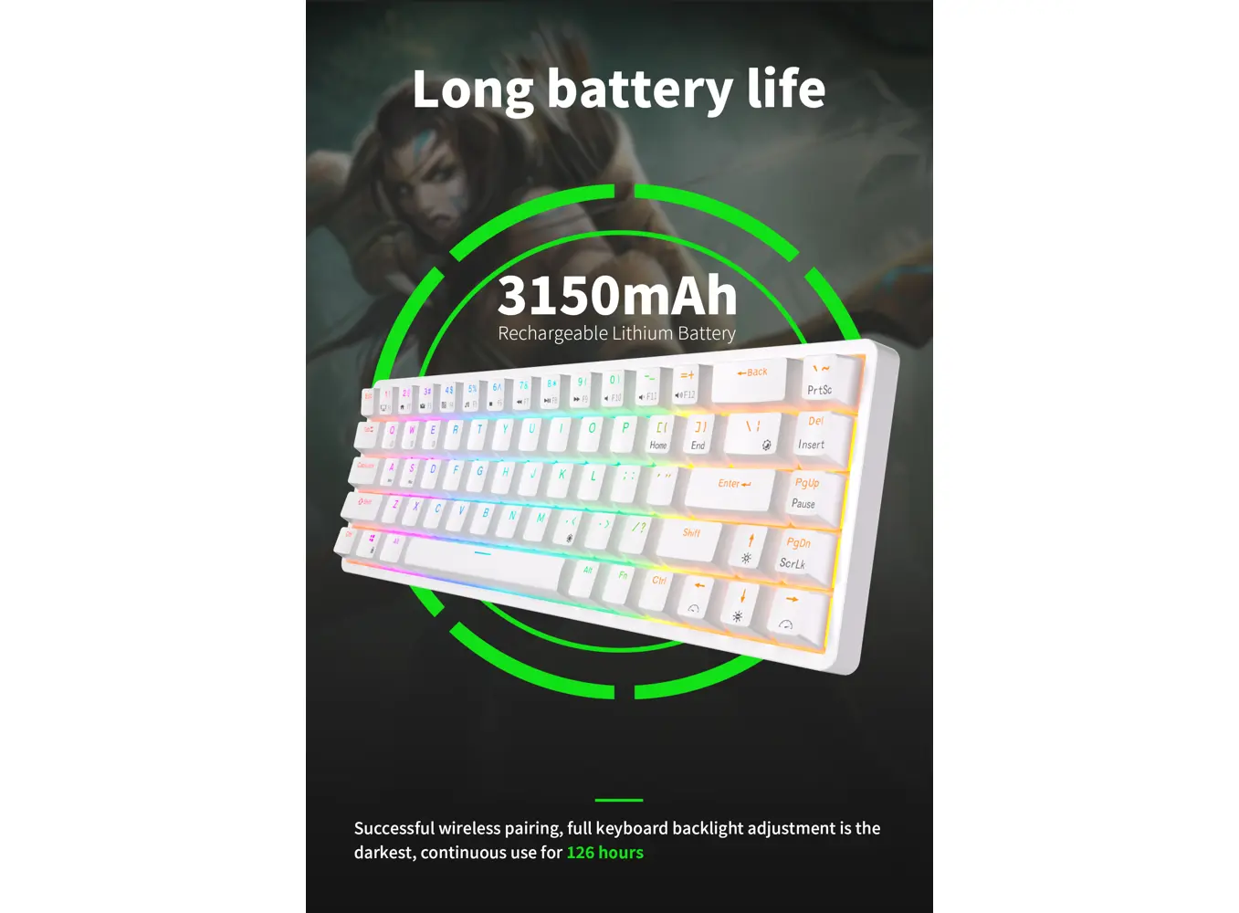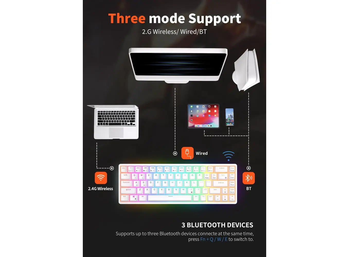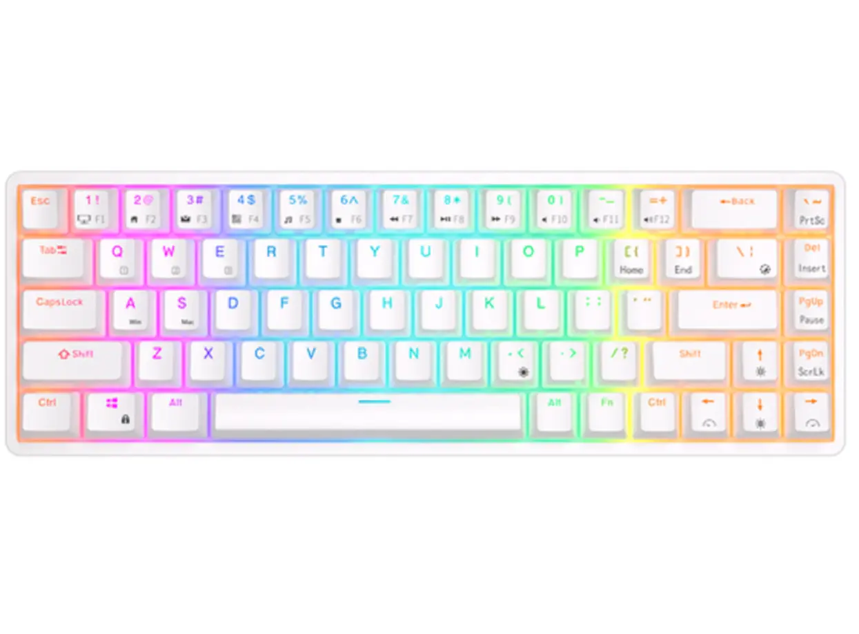 კლავიატურა Royal Kludge RK G68 RGB Mechanical Keyboard, Red switch, Hot Swappable, Wireless, USB Type-C, 2.4 GHz, Bluetooth, White