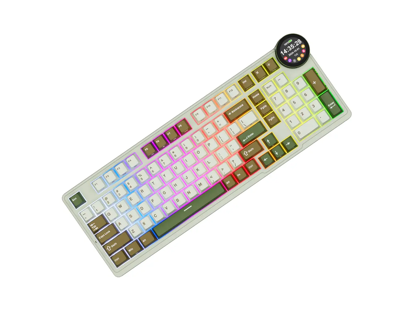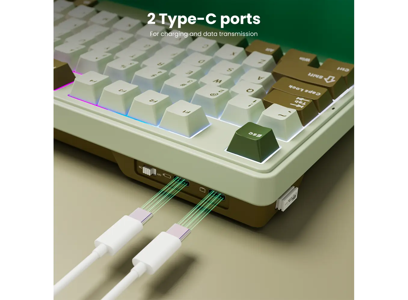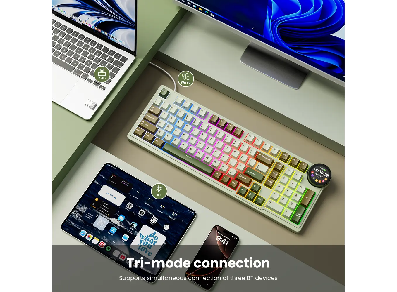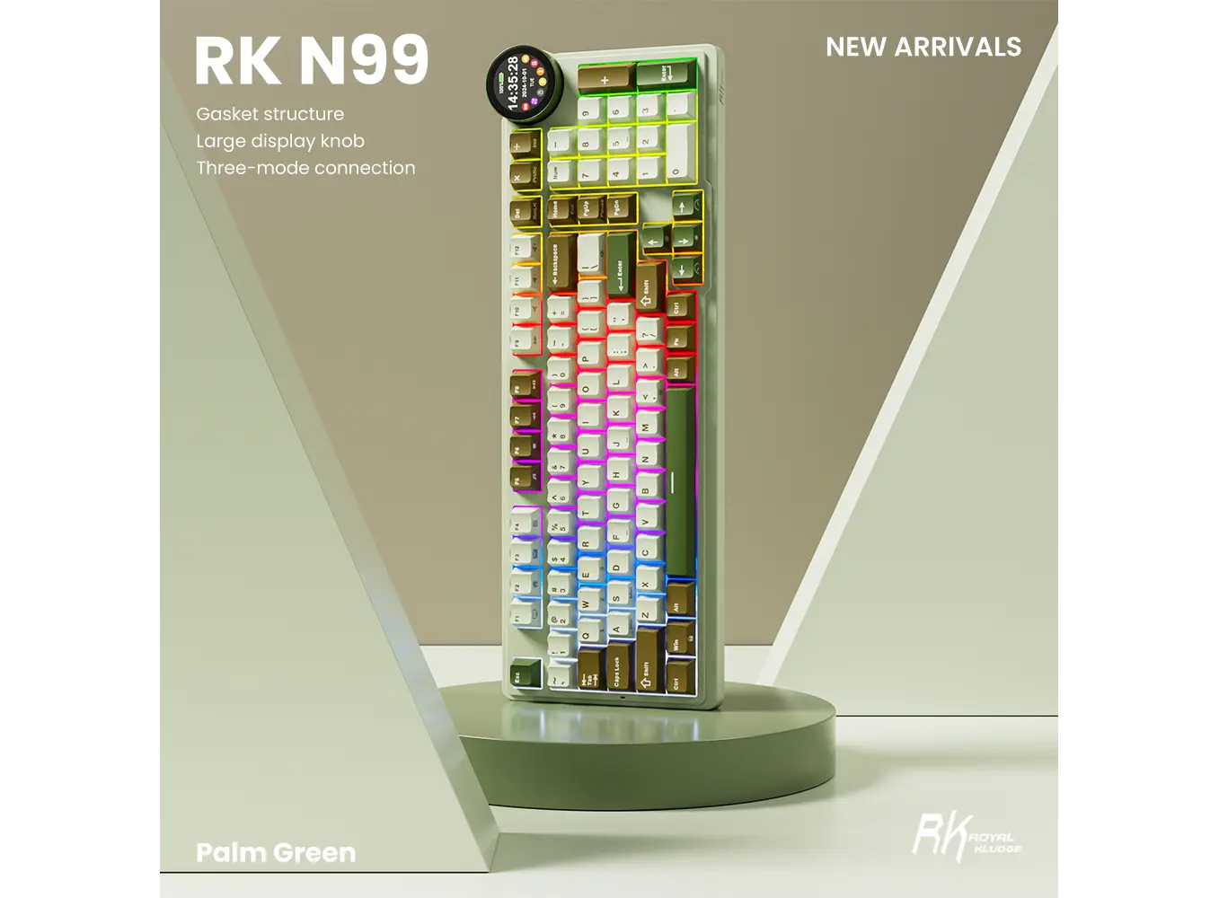 კლავიატურა Royal Kludge RK N99 RGB Mechanical Keyboard, Cream Switch, Hot Swappable, Wireless, USB, Bluetooth, 2.4GHz, Palm Green