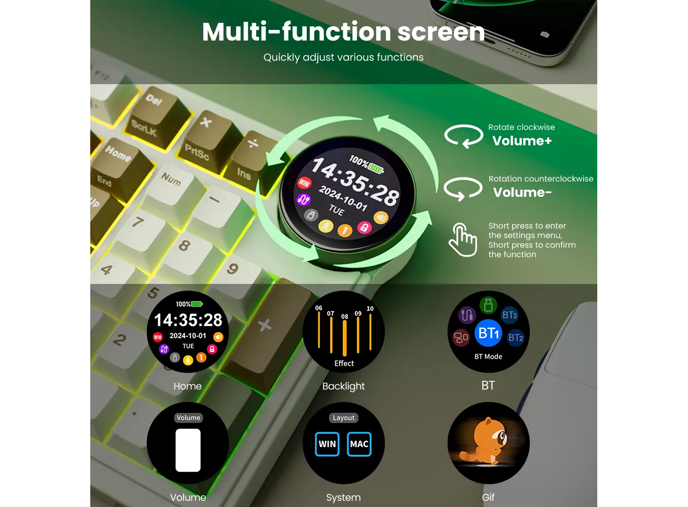 - კავშირი: Bluetooth/2.4G/USB