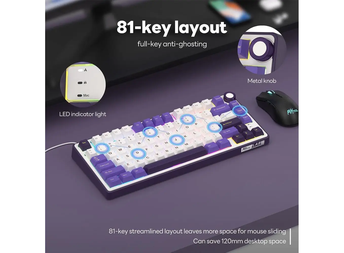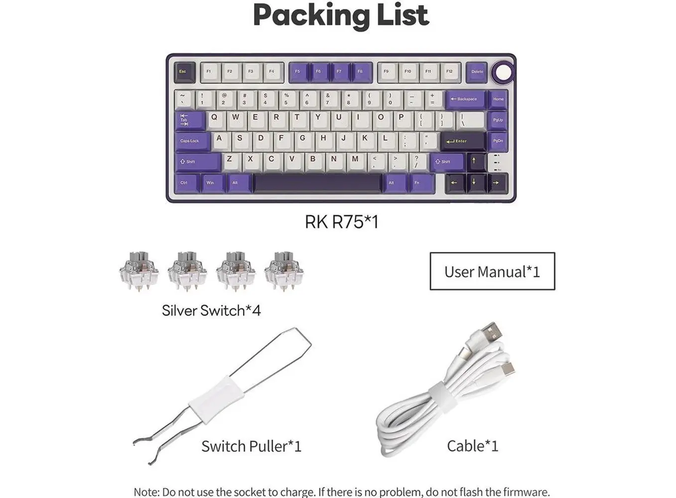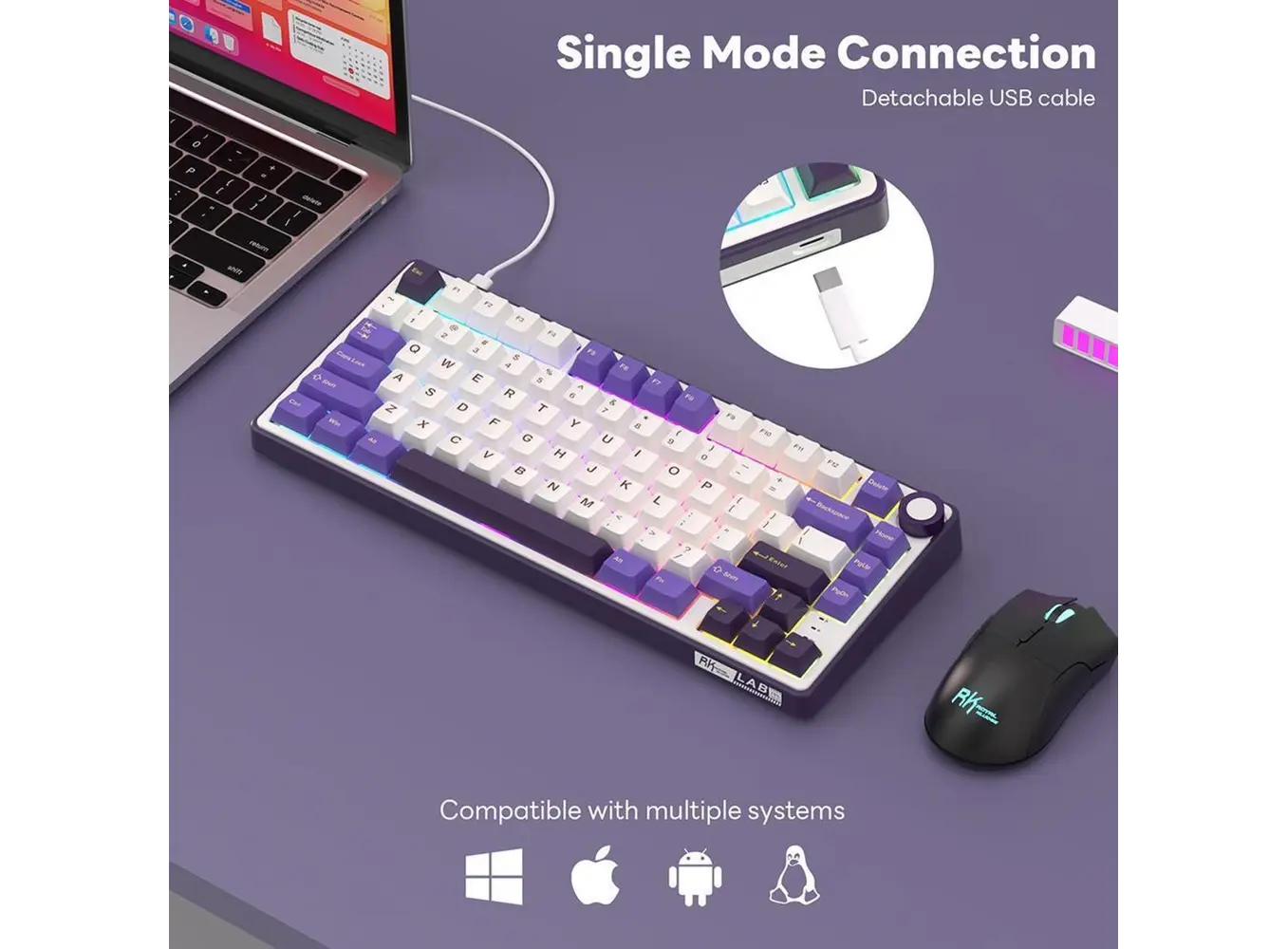 კლავიატურა Royal Kludge RK R75 RGB Mechanical Keyboard, Brown switch, Hot Swappable, Hot Swappable, Type-C wired, Blackberry