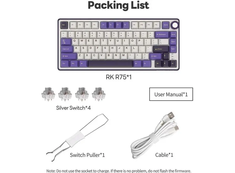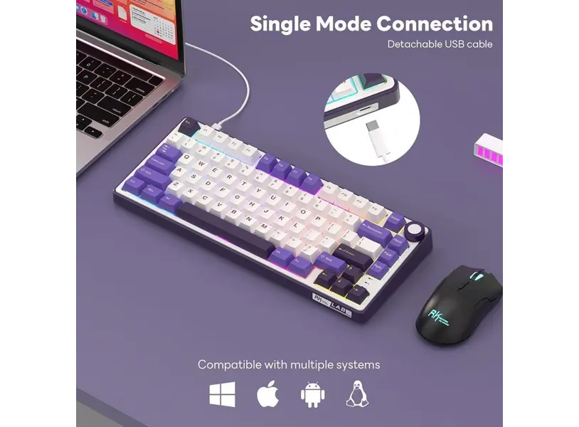 კლავიატურა Royal Kludge RK R75 RGB Mechanical Keyboard, K silver switch, Hot Swappable, Type-C wired, Blackberry